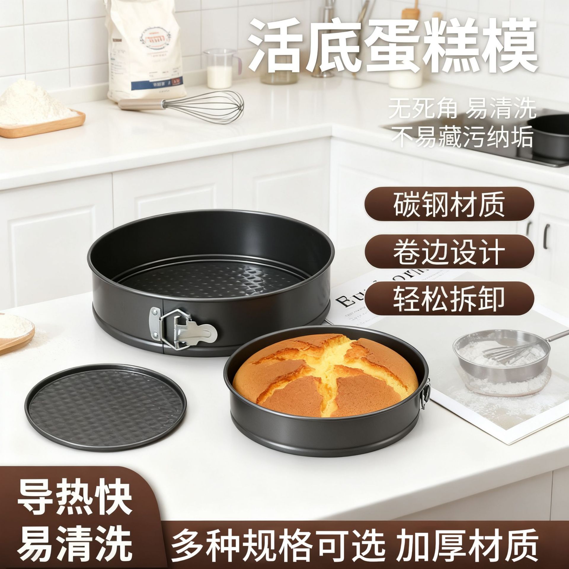 碳钢带扣活底戚风蛋糕模具家用不沾慕斯蛋糕模多尺寸烤盘烘焙工具