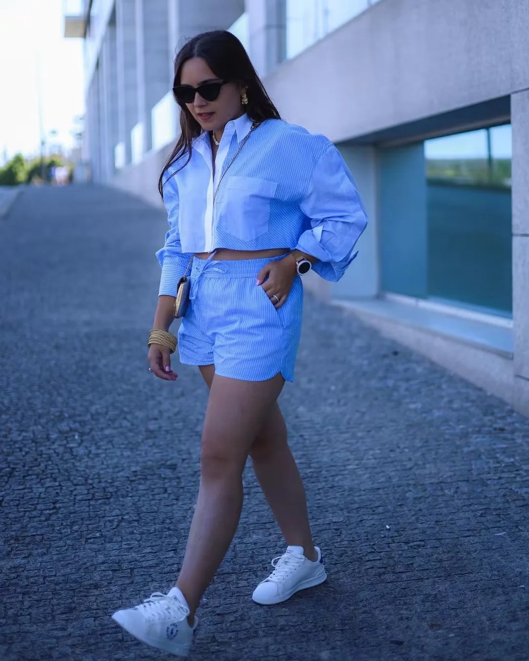 2025夏季跨境地中海休闲办公女装前开襟单排扣长袖翻领热短裤套装