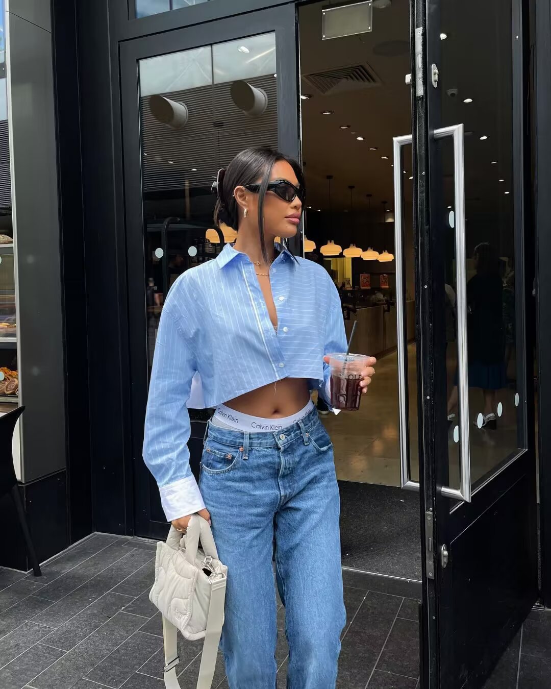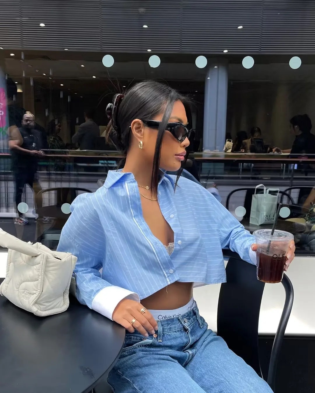 PB&ZA女装2025年秋季新款辣妹风露背款条纹府绸挂脖领上衣4764135