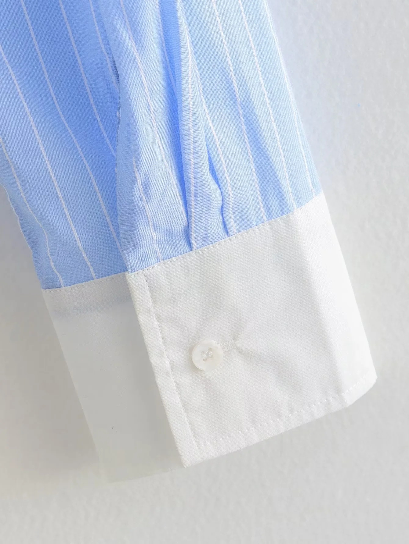 国境を越えた対外貿易欧米風女装春夏の新型衝突色縞長袖シャツ衝突色縞パンツセット