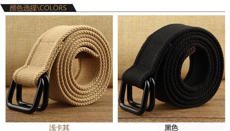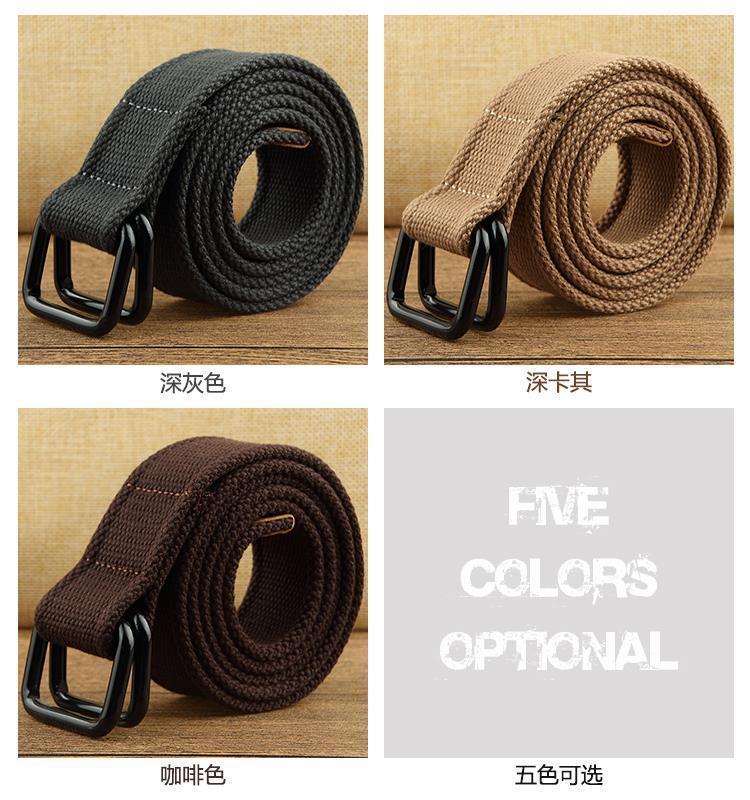 穴がないので、穴を開けないでください。男女キャンバスベルトのダブルリングは学生の軍事訓練ベルトの男性の装飾のダブルボタン編みのズボンのベルトです。