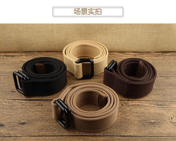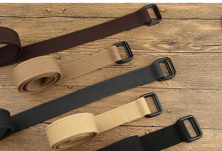 香港風ワークウェアポリエステル綿ベルトダブルリングバックル男女兼用若者向けトレンド万能レザーカジュアルパンツベルト