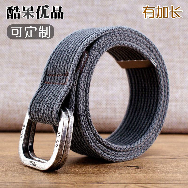 韓国版ダブルバックル編みベルト男性女性キャンバス通用カジュアルジーンズ工装ベルトアウトドア