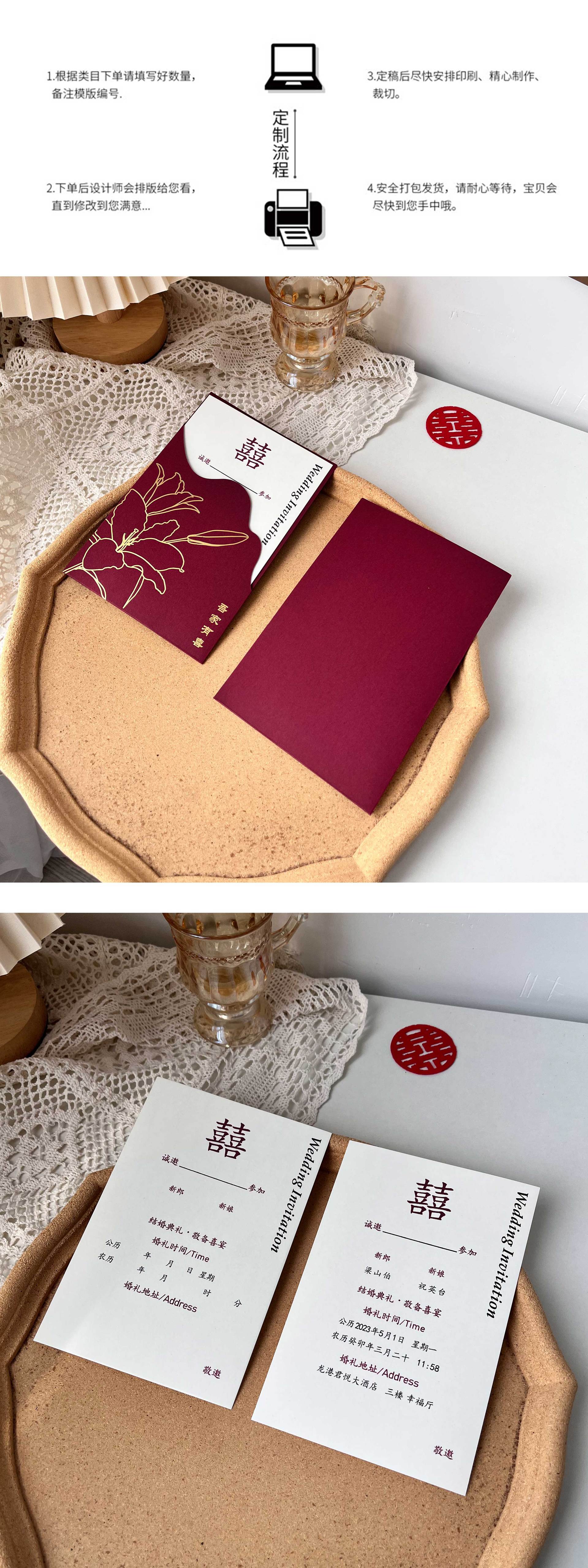 中国式招待状結婚招待状新婚招待状結婚式招待状紙印刷2025新型高級感紙