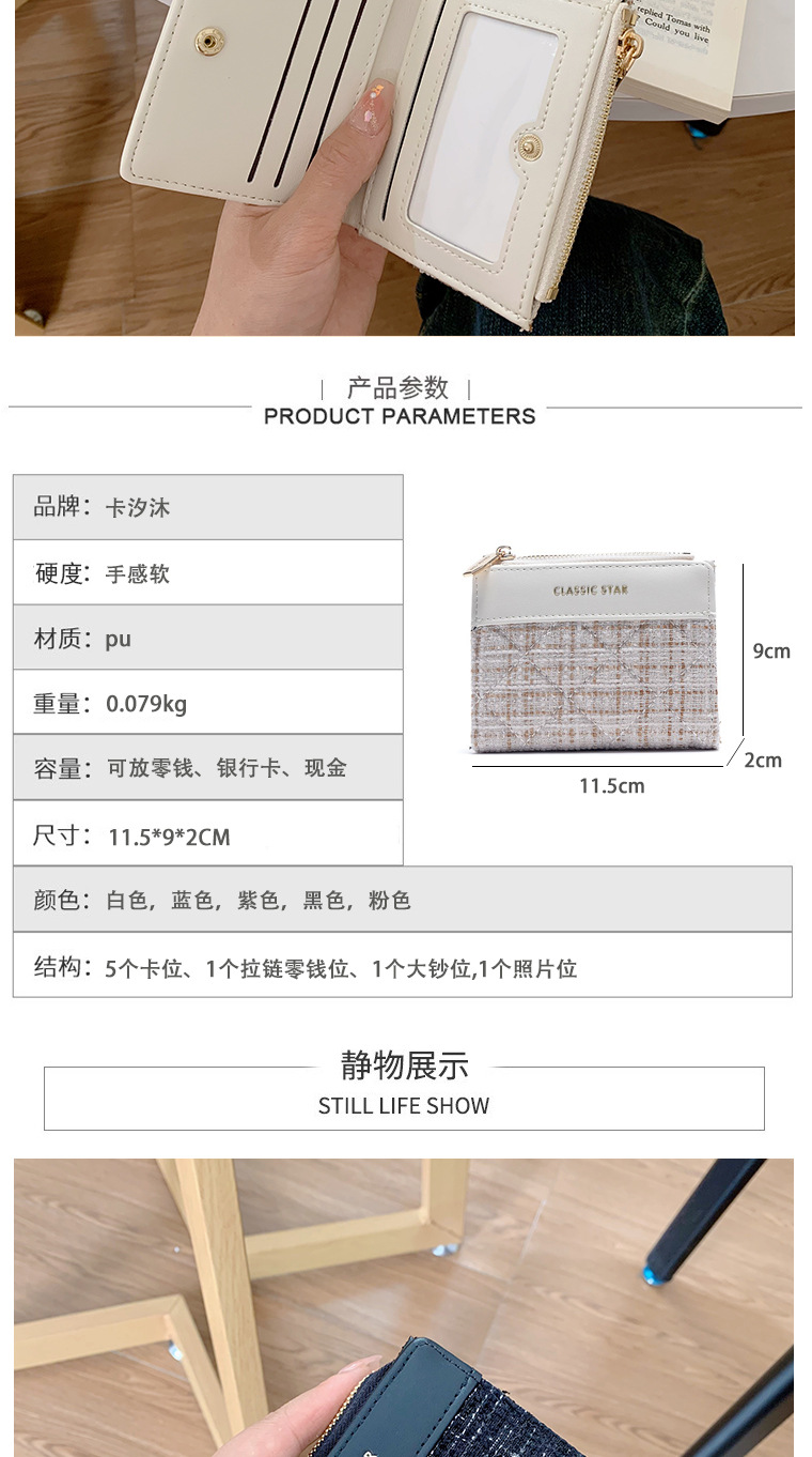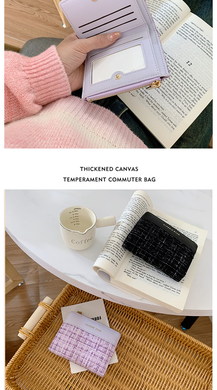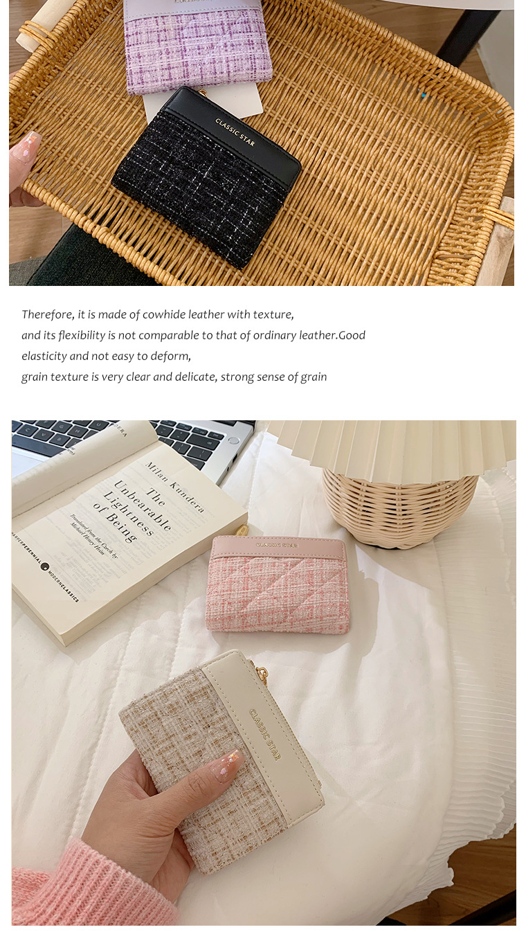 レディース財布insレディース韓国風ショートタイプ小香風大容量レディース学生純色シンプルクロスボーダーwallet