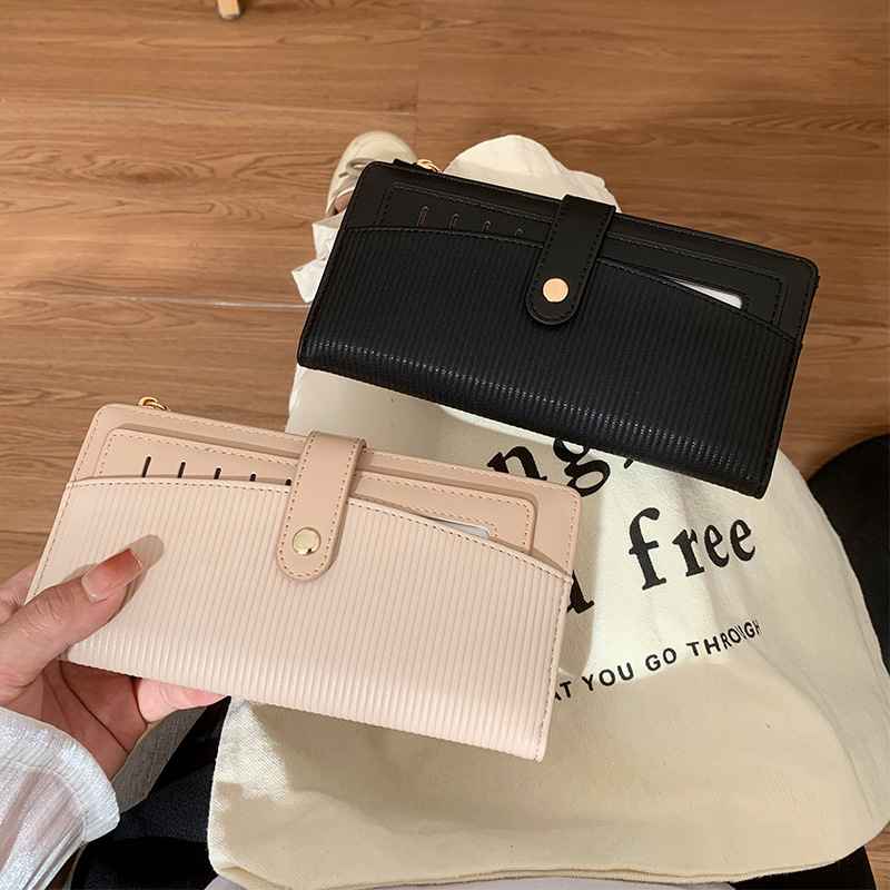新型多機能超薄型レディース長財布ファッション折りたたみファスナーバックルハンドバッグ純色携帯小銭入れ
