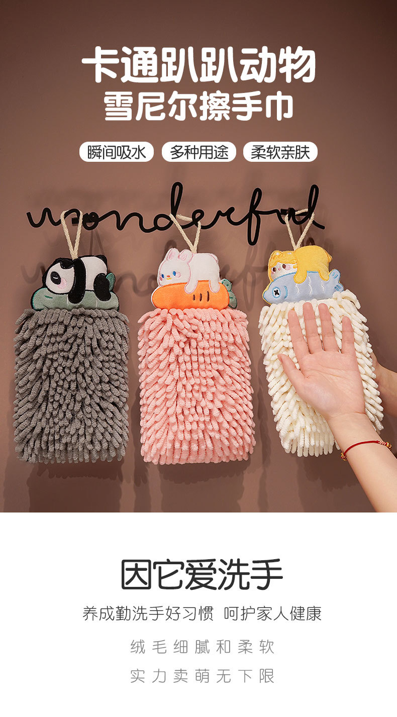 ハンドタオル ハンギング 子供用 シェニール 吸収性 サッサフラス ハンドタオル 糸くずの出ない 厚みのあるハンドタオル かわいい キッチン ハンドタオル