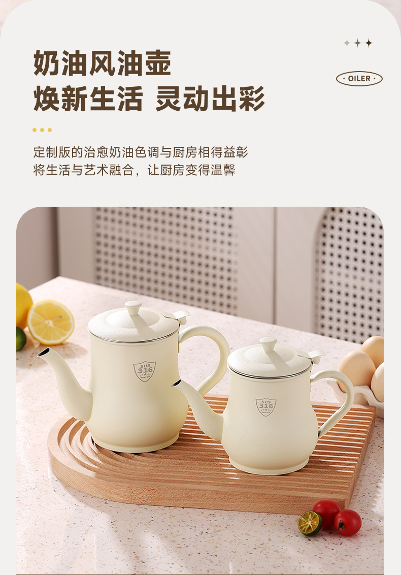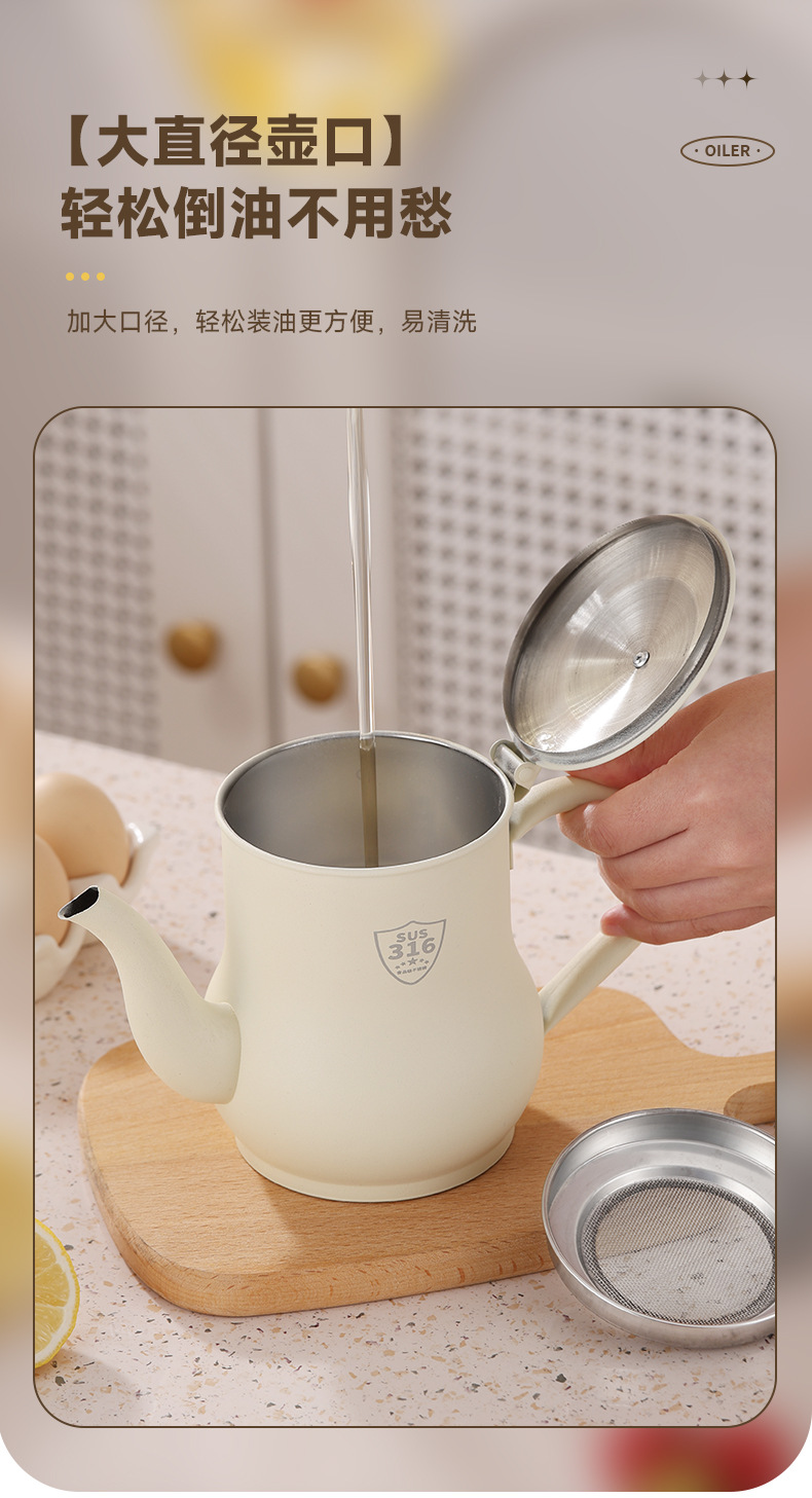 316 ステンレス鋼オイルポット乳白色オンスポット家庭用醤油ポットオイルフリーキッチンオイルポット蓋とフィルター
