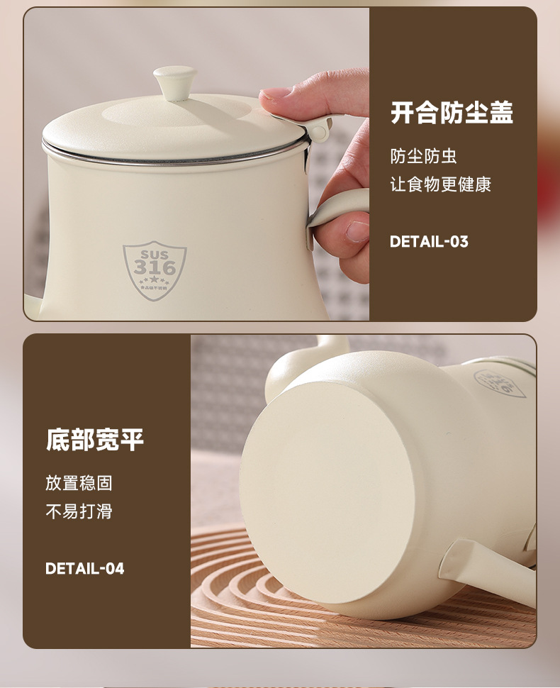 ステンレスの油壺のミルクの白い安士壺の家庭用の醤油壺は油をかけません。
