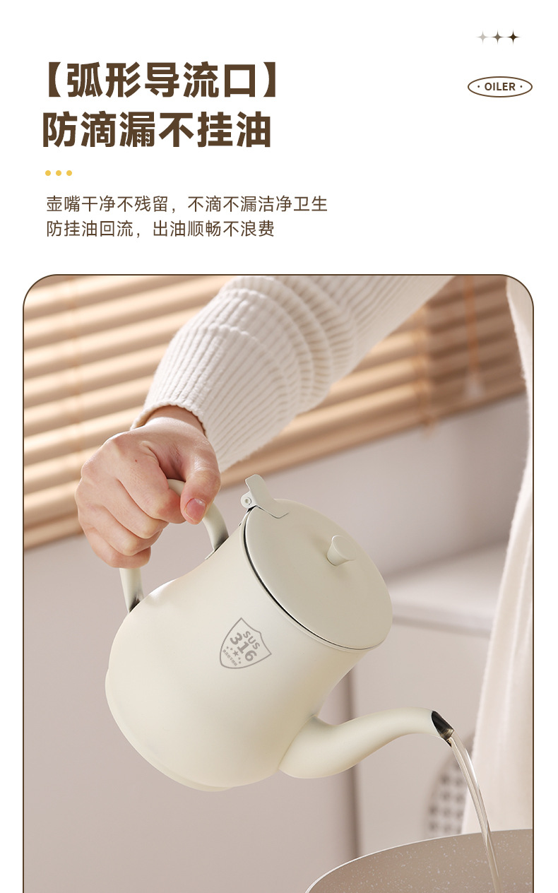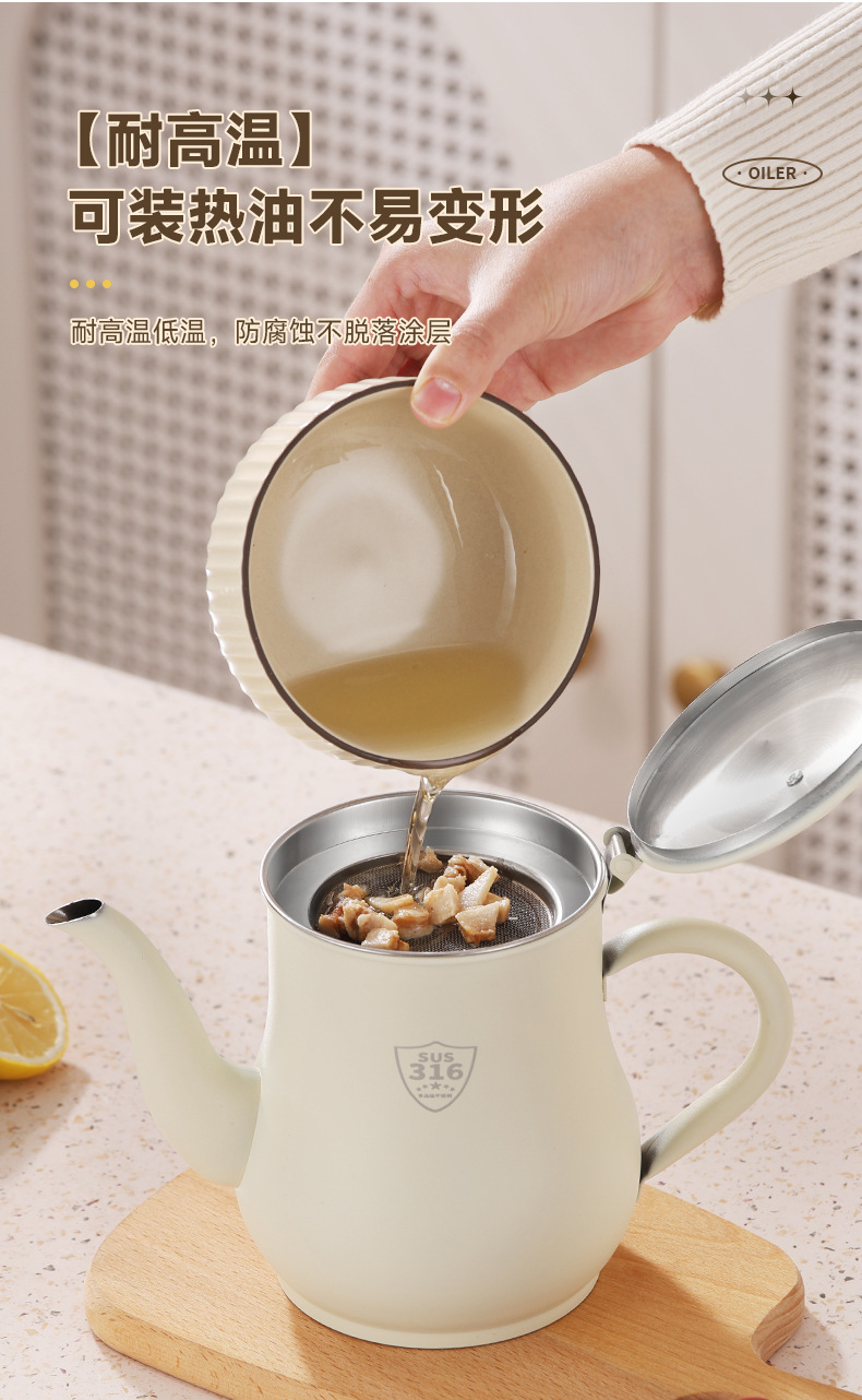ステンレスの安士油壺を厚くして濾過網を持っています。