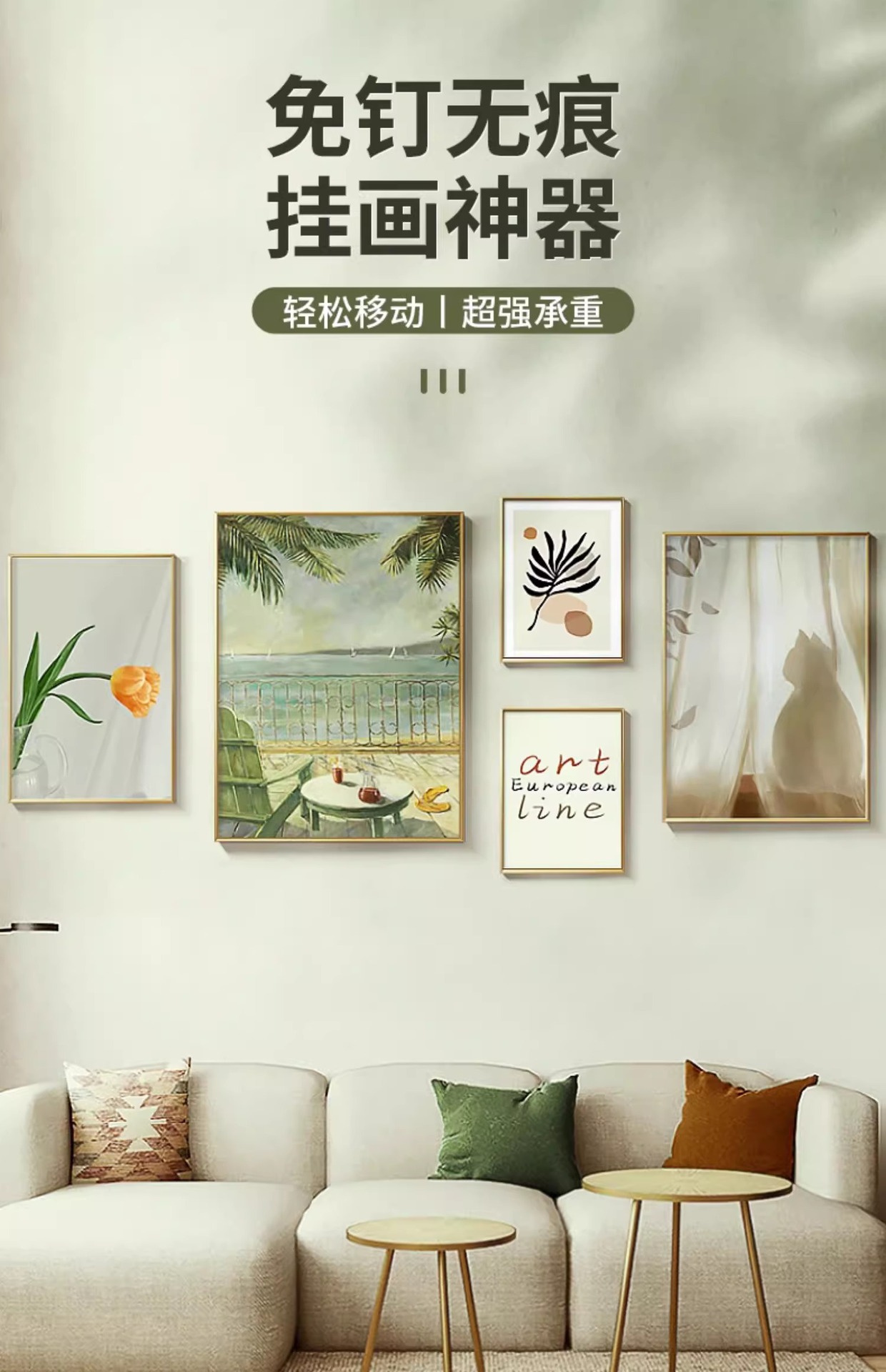 无痕魔力扣挂画神器免打孔婚纱照相框挂墙钉双面胶魔术贴画框挂钩