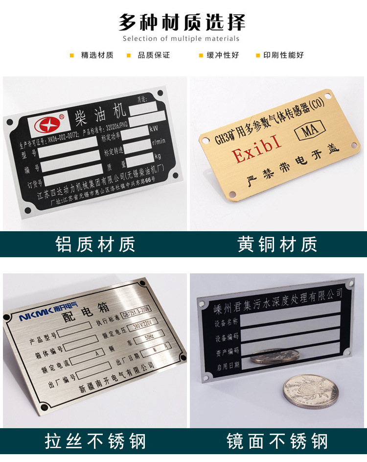 メーカー卸売りシルク印刷ステンレス銘板腐食プレス標識uv印刷金属銘板多種の材質