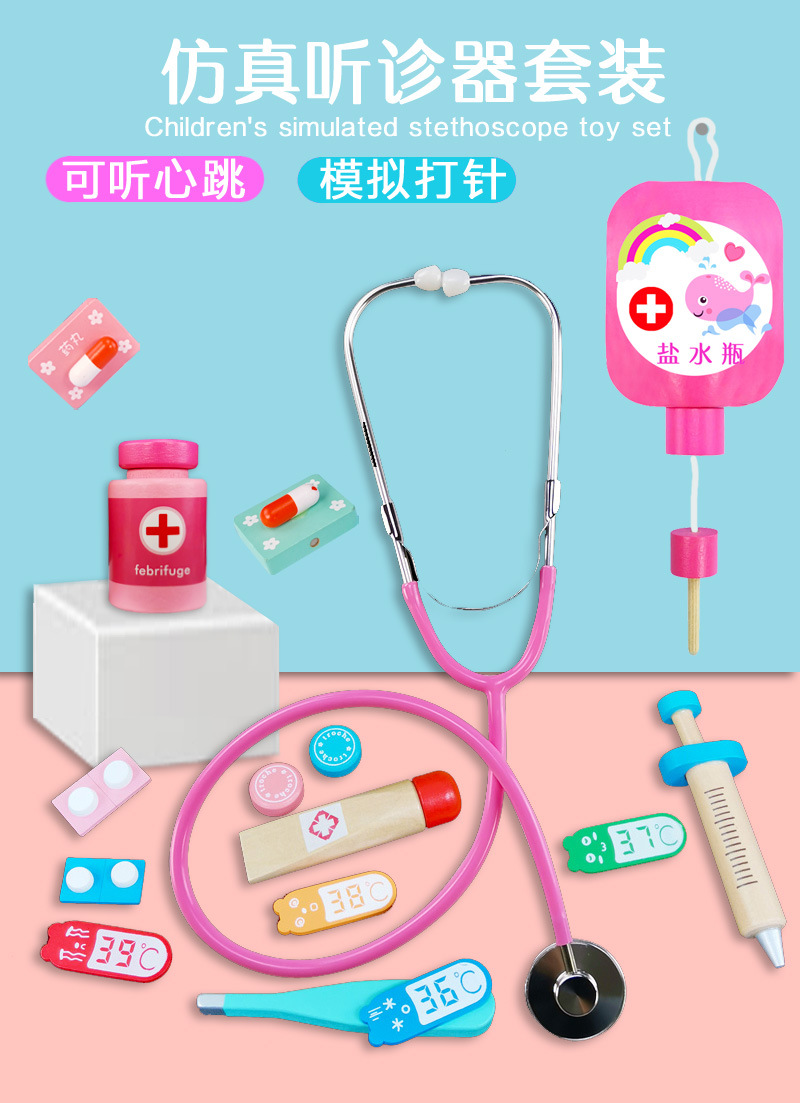 ダブルヘッド聴診器子供用おもちゃセットおまままごと看護師男の子女の子注射赤ちゃんシミュレーションお医者さん演じる