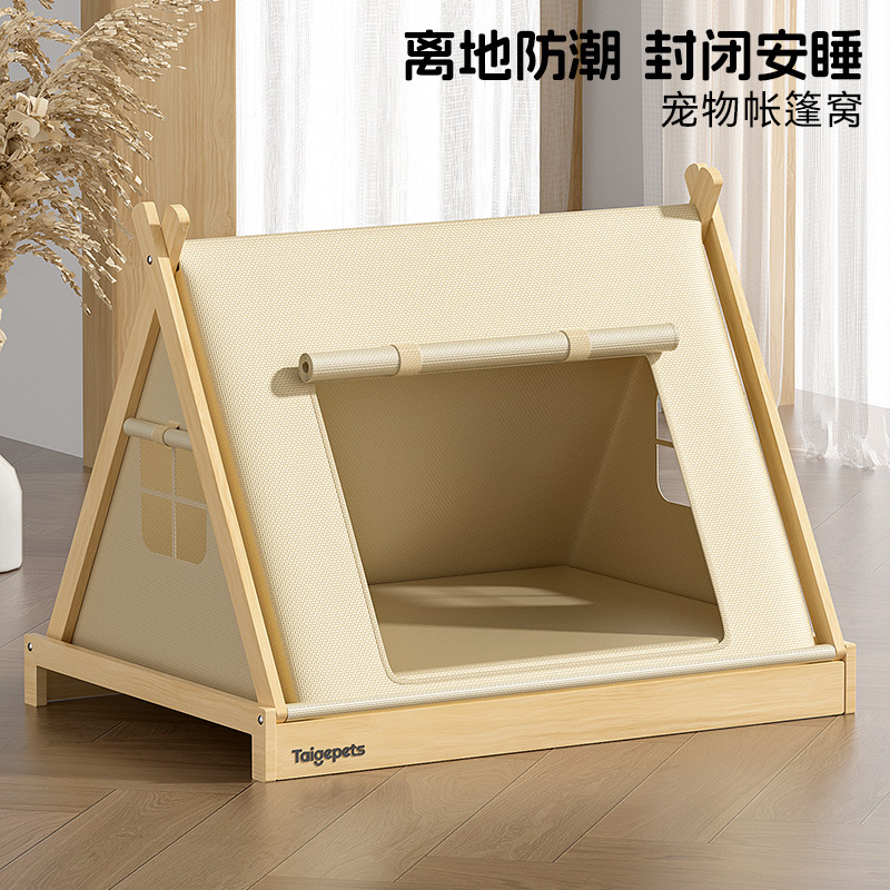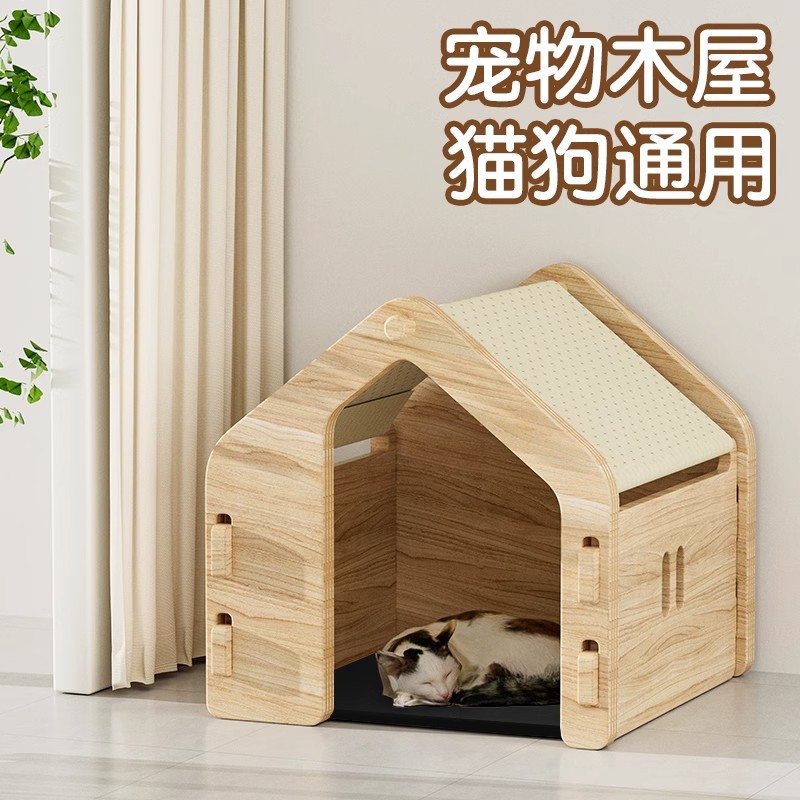 木製ペット猫犬小屋別荘家四季通用夏猫テントベッド半閉鎖式エアコンハウス