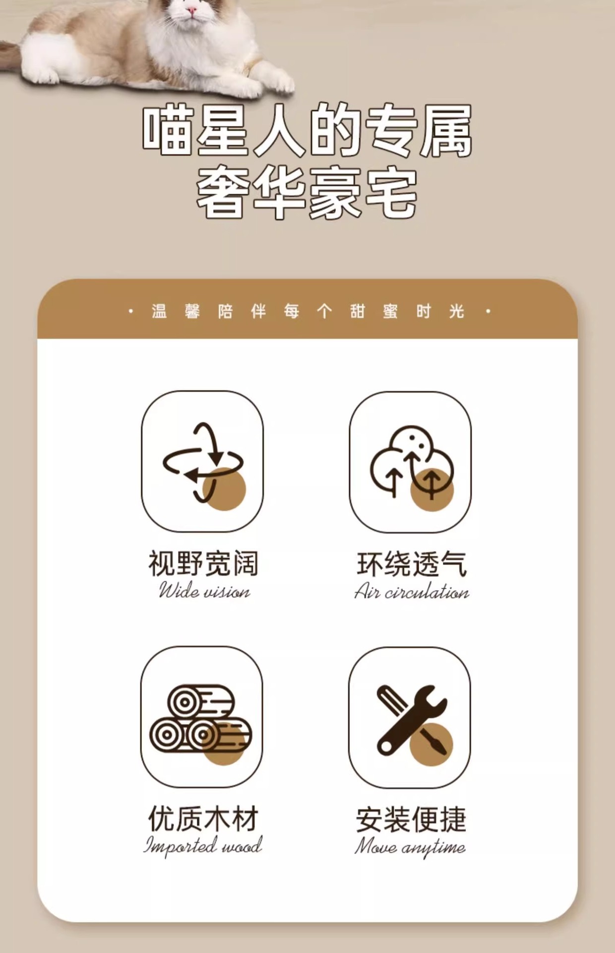 実木ペット猫窩冬保温閉鎖安心感家猫犬窩四季通用別荘屋睡眠巣