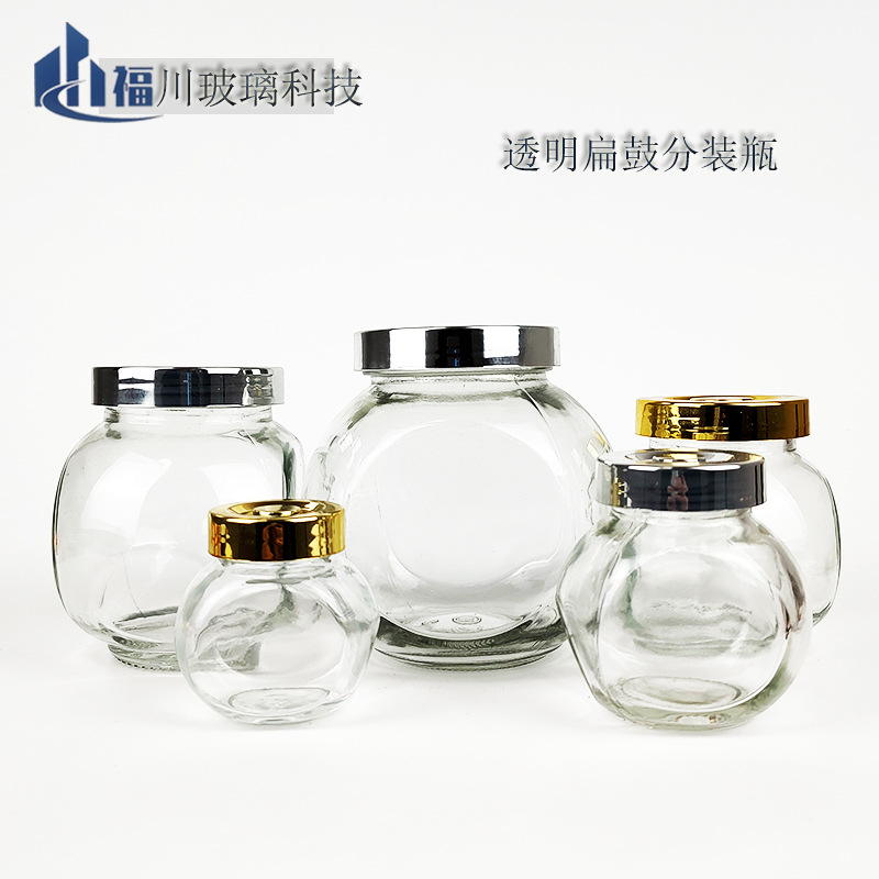 卸売り平鼓調味料瓶台所用品防湿大中小ガラス瓶乾燥果貯蔵物喜糖密封ガラス缶
