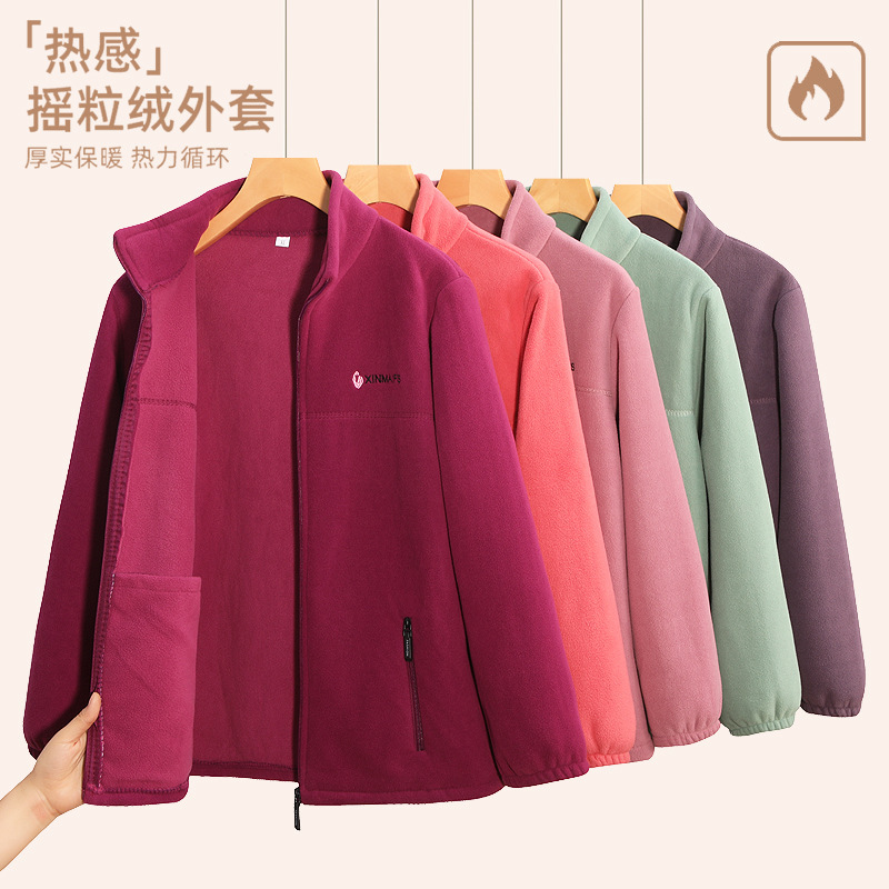 秋と冬のポーラーフリースジャケット女性のフリースジャケットプラスベルベット肥厚スタンドカラーカーディガンアウトドアスポーツ暖かいトレーナートップ
