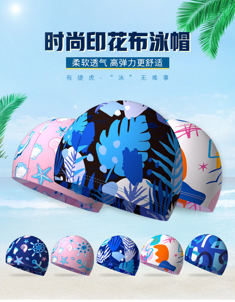 メーカー直販水泳帽新型花布帽現物卸売り速乾ファッション模様ニット水泳帽水泳帽