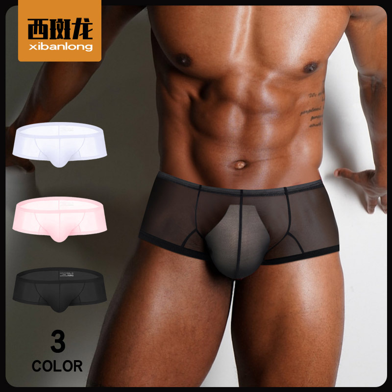 肌着四角パンツ小平角大包尻パンツ男低腰速乾通気パンツ単層薄金半透明