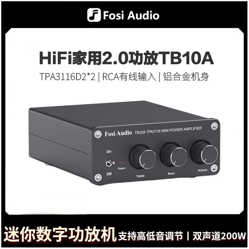 Fosiaudio tb10a 2チャンネルステレオロスアンプ高低音調節可能なミニアンプ