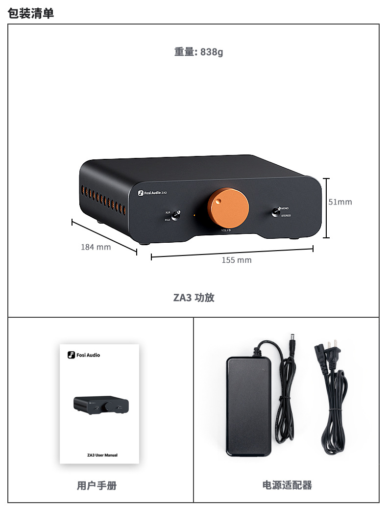 FosiAudio ZA3バランス入力発熱級デジタル機能器hifi家庭用2.1ハイパワーアンプ