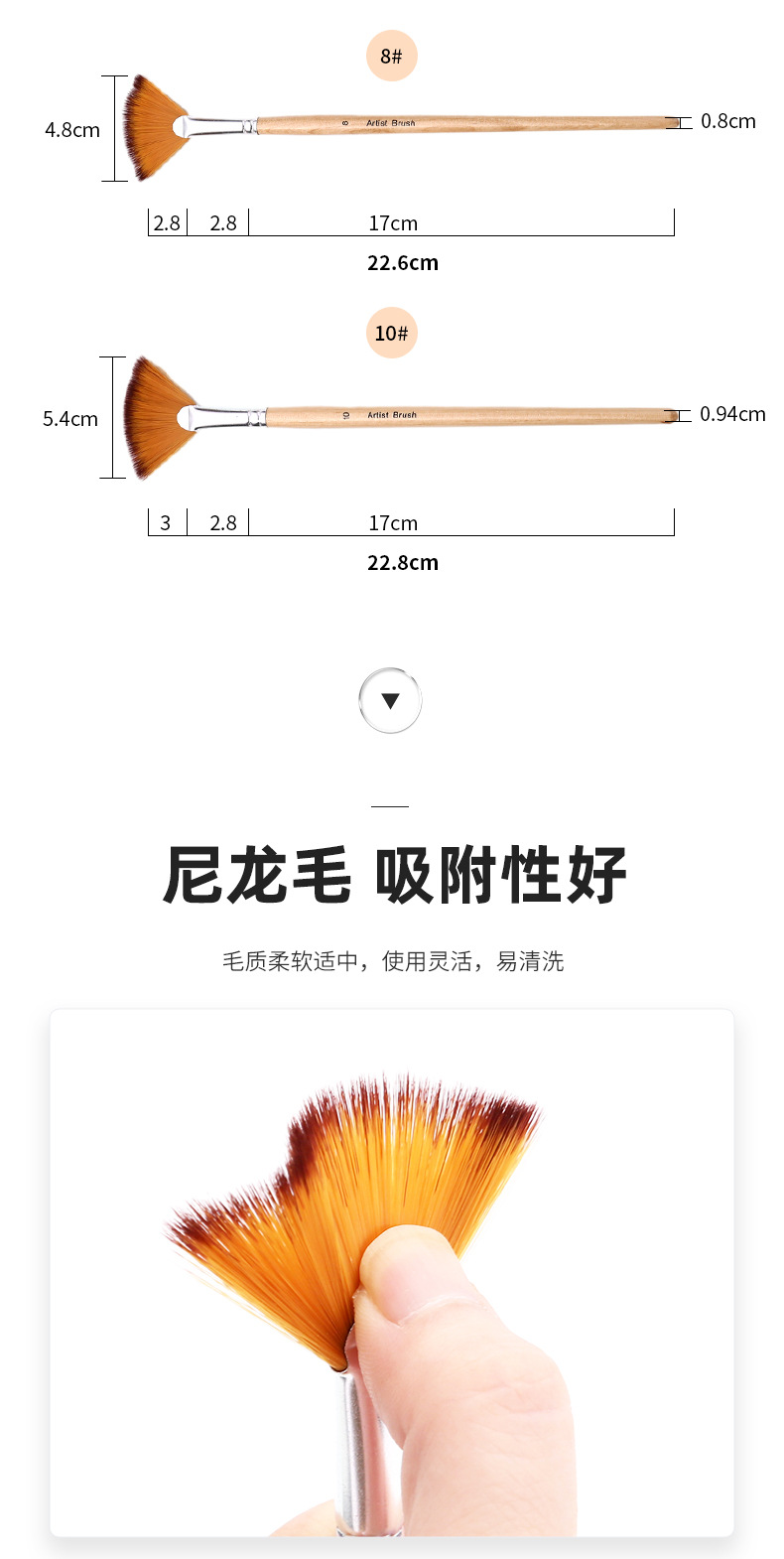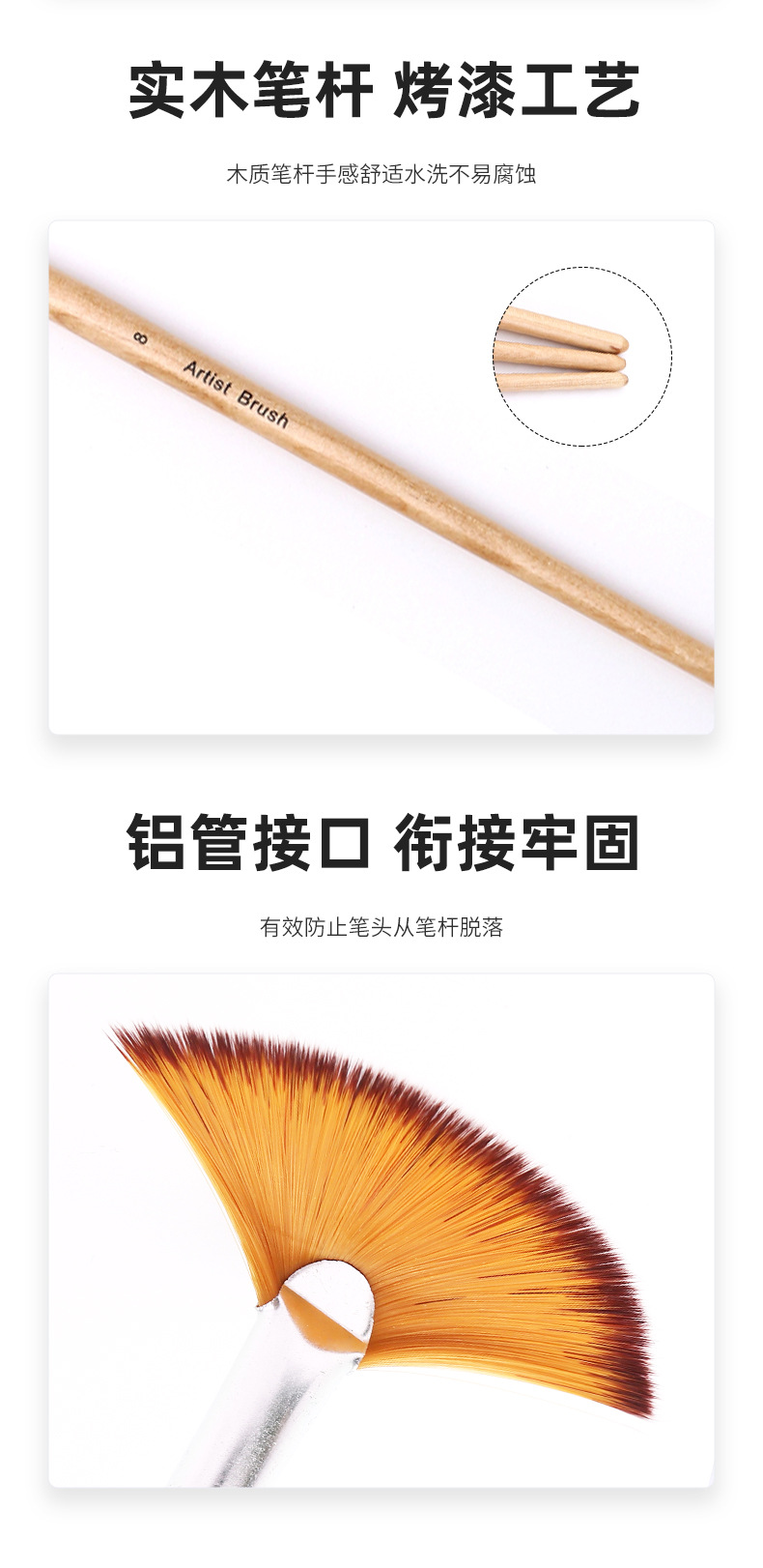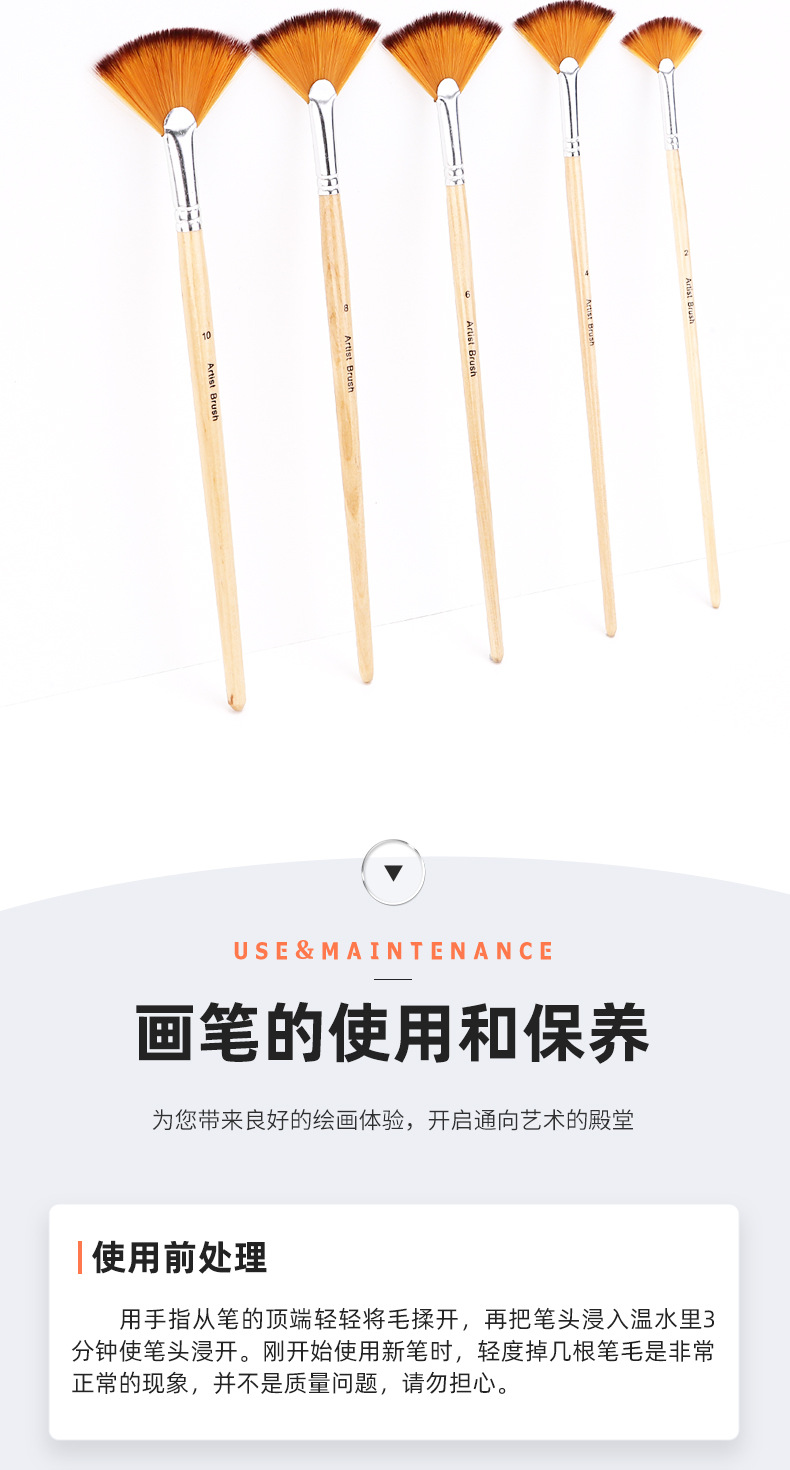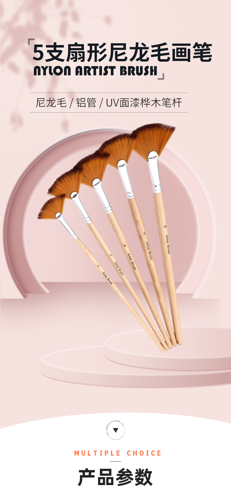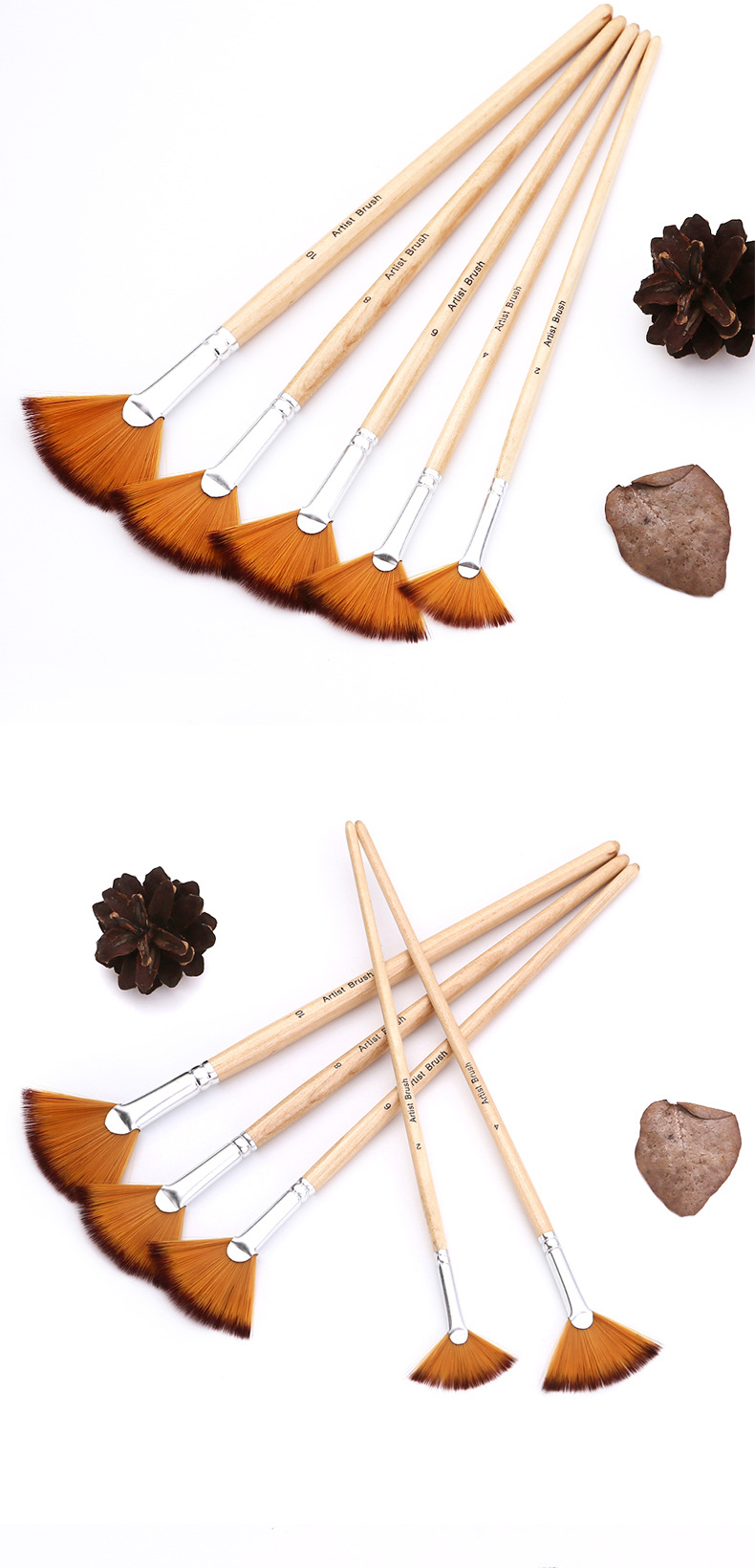 5本の扇形の絵筆セットの2色のナイロンの毛の絵のブラシの水の粉の子供の絵画の水彩画のブラシの油絵のブラシ