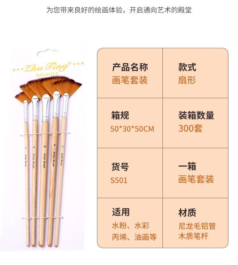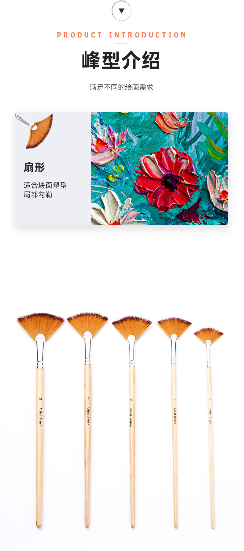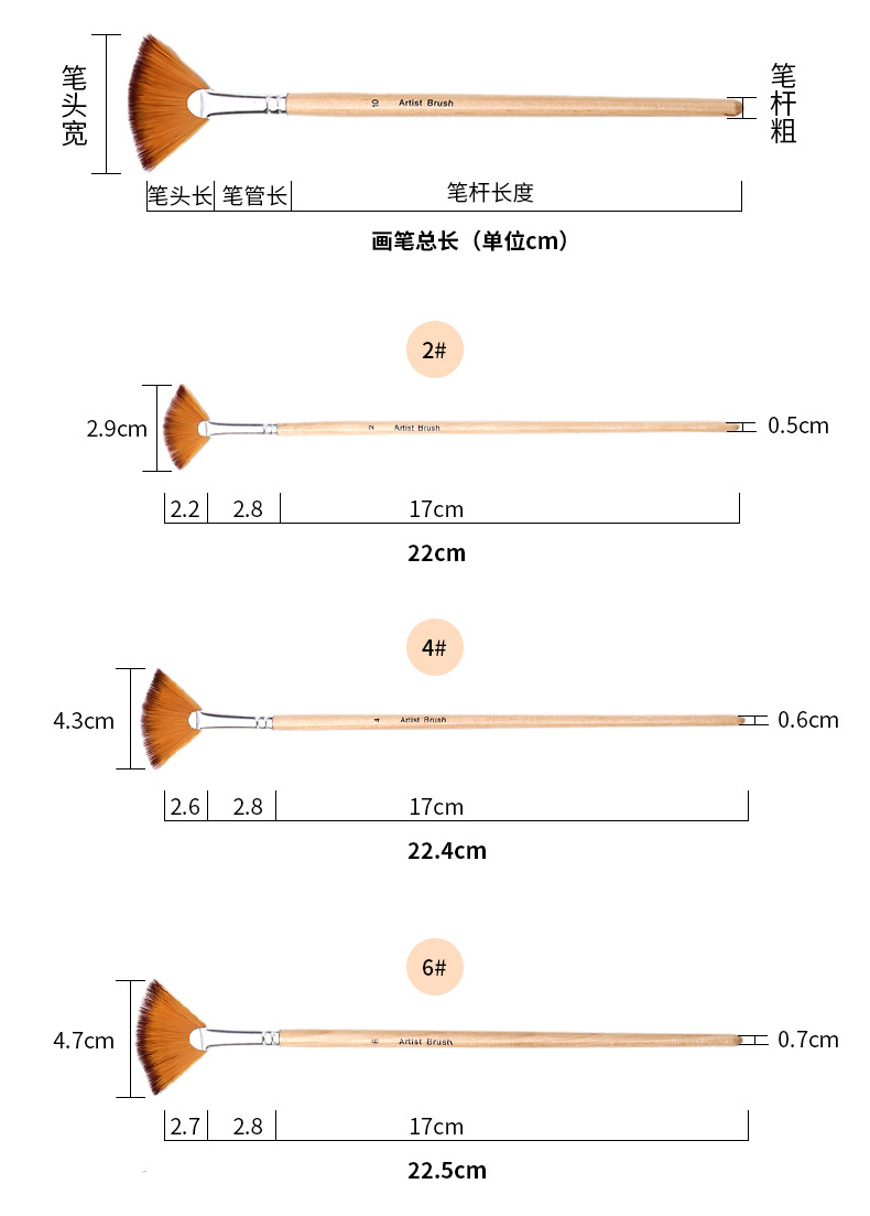 仕様 S501-5本の絵筆の扇形(2 #4 #6 #8 #10 #)