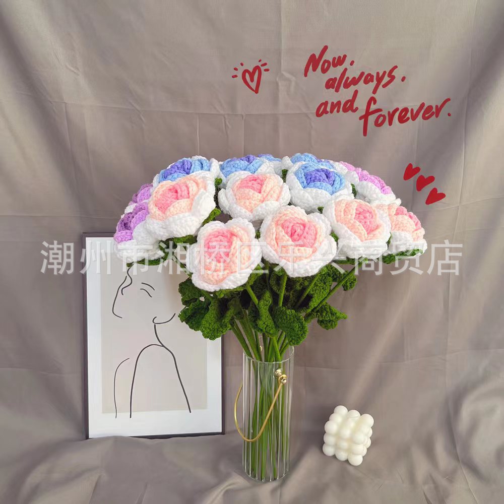 完成品クロスボーダーニット毛糸愛盆栽シミュレーション花書斎デスクトップ置物バレンタインデークリスマスプレゼント