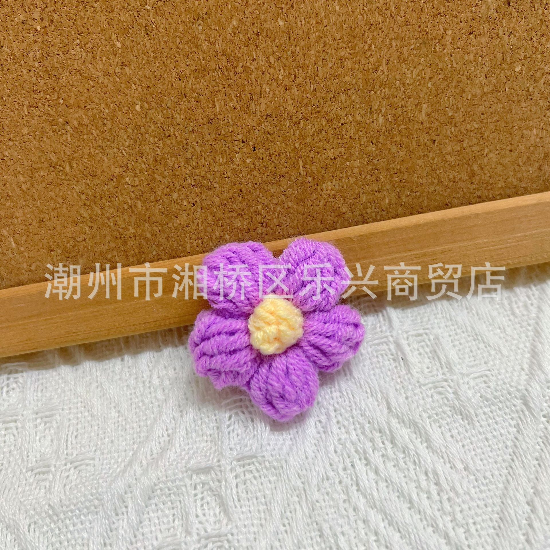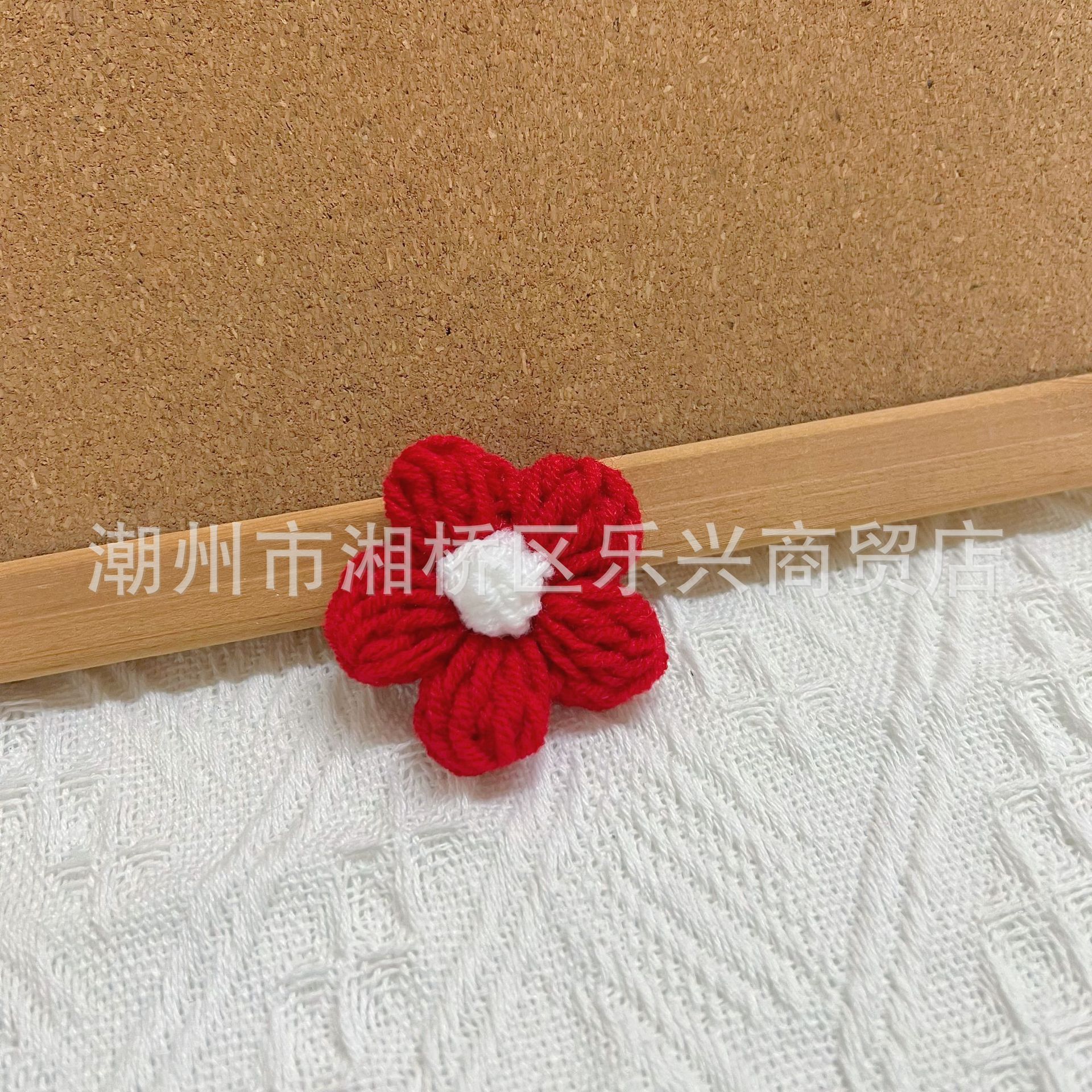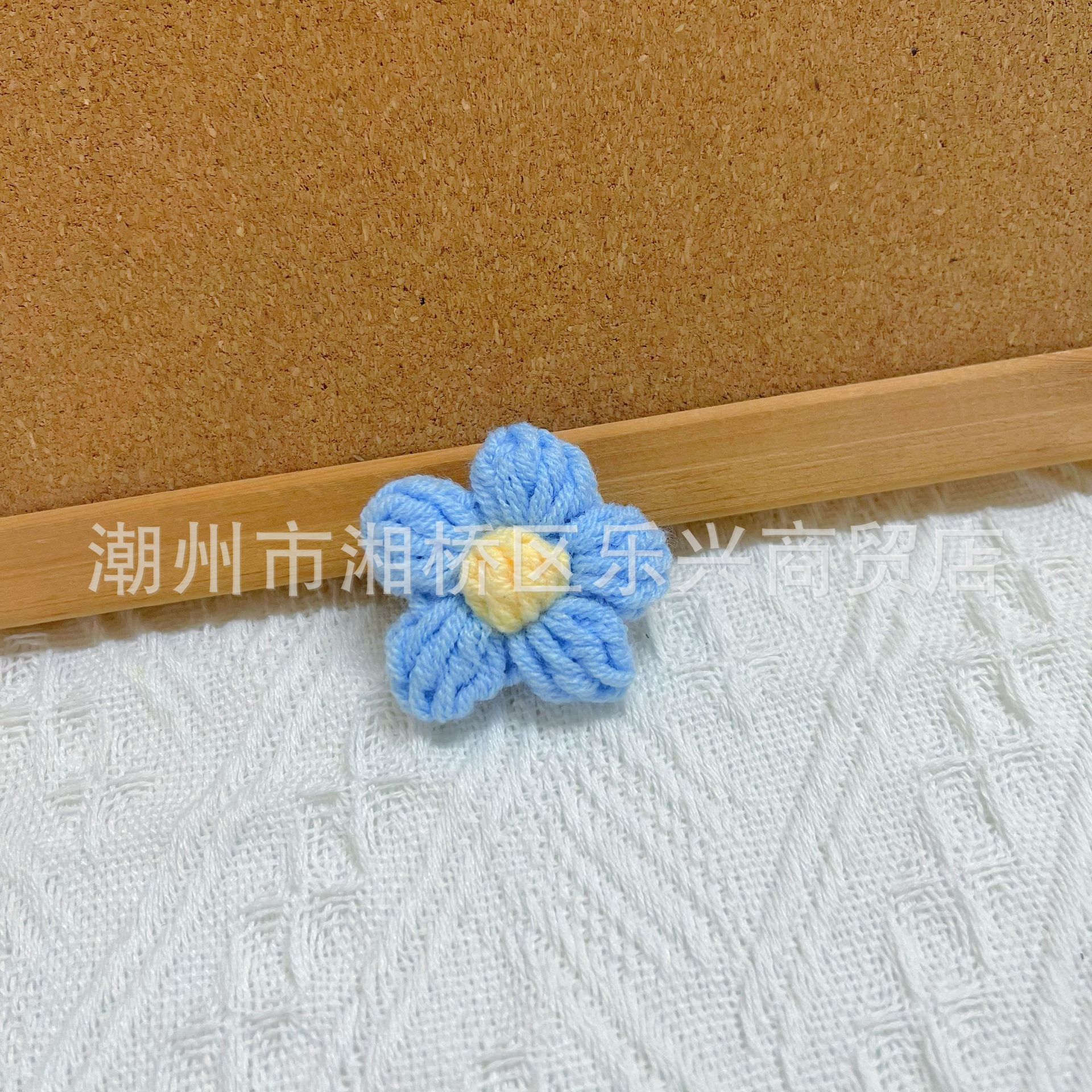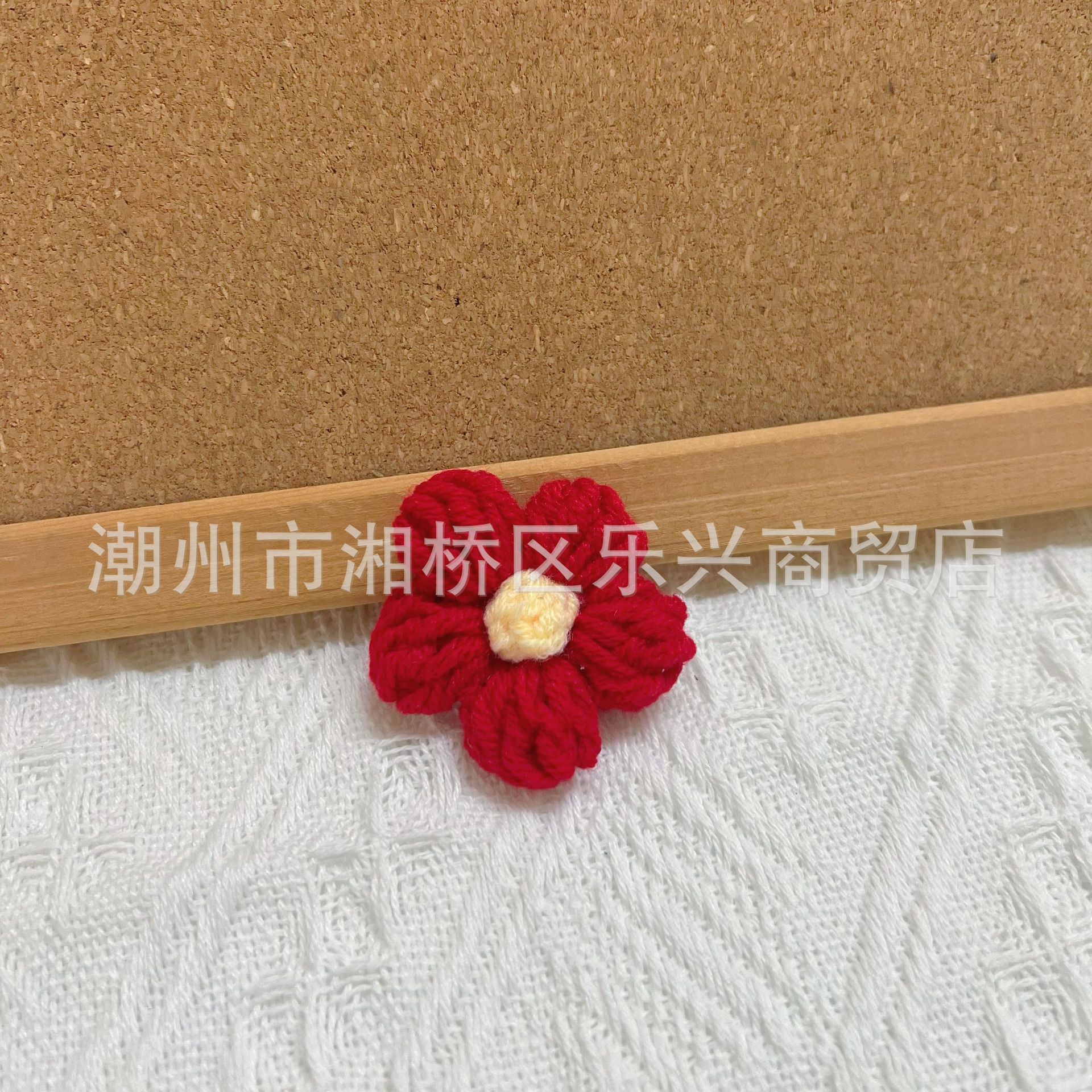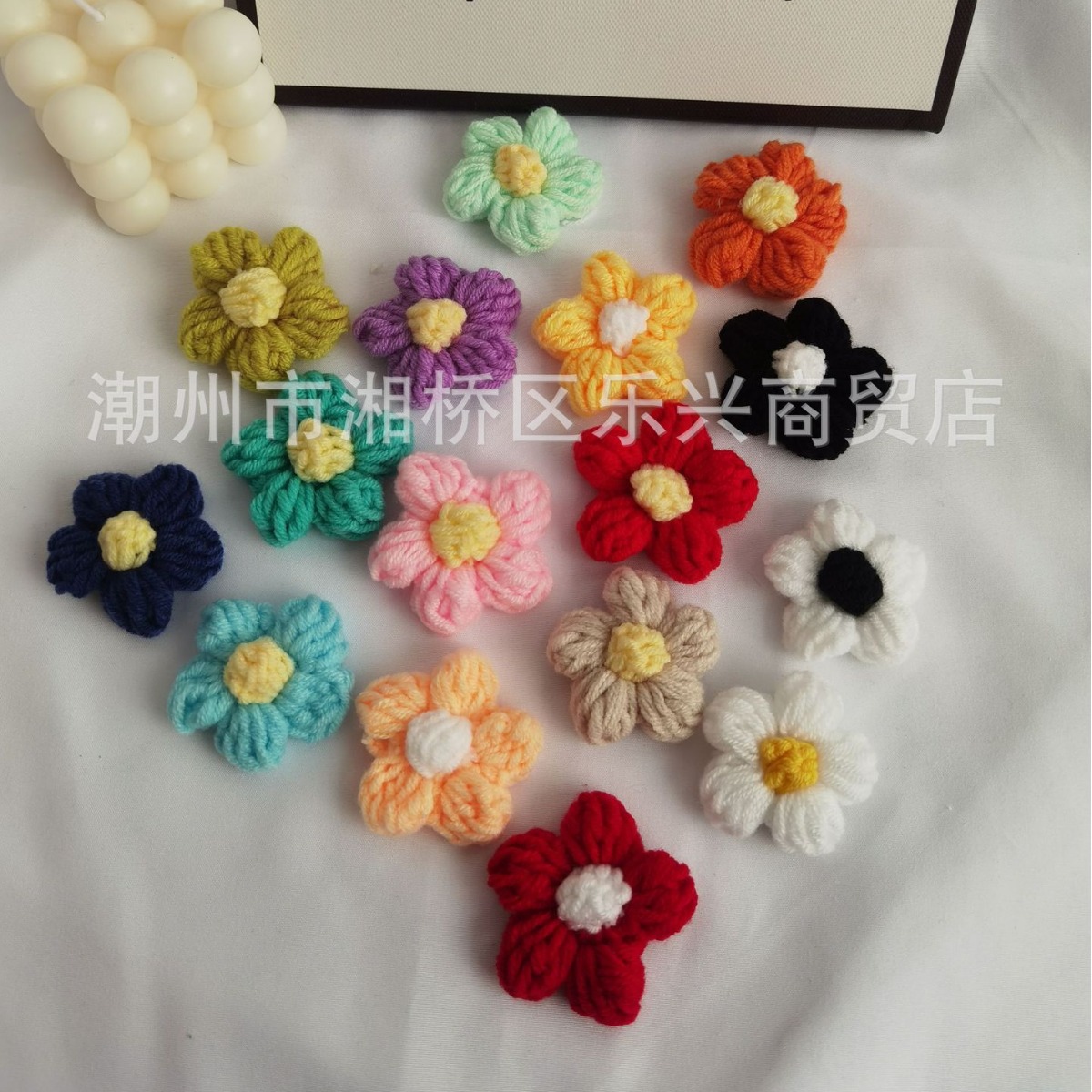 秋冬款毛线泡芙花 diy饰品配件五瓣花手工钩花鞋帽包包花朵辅料