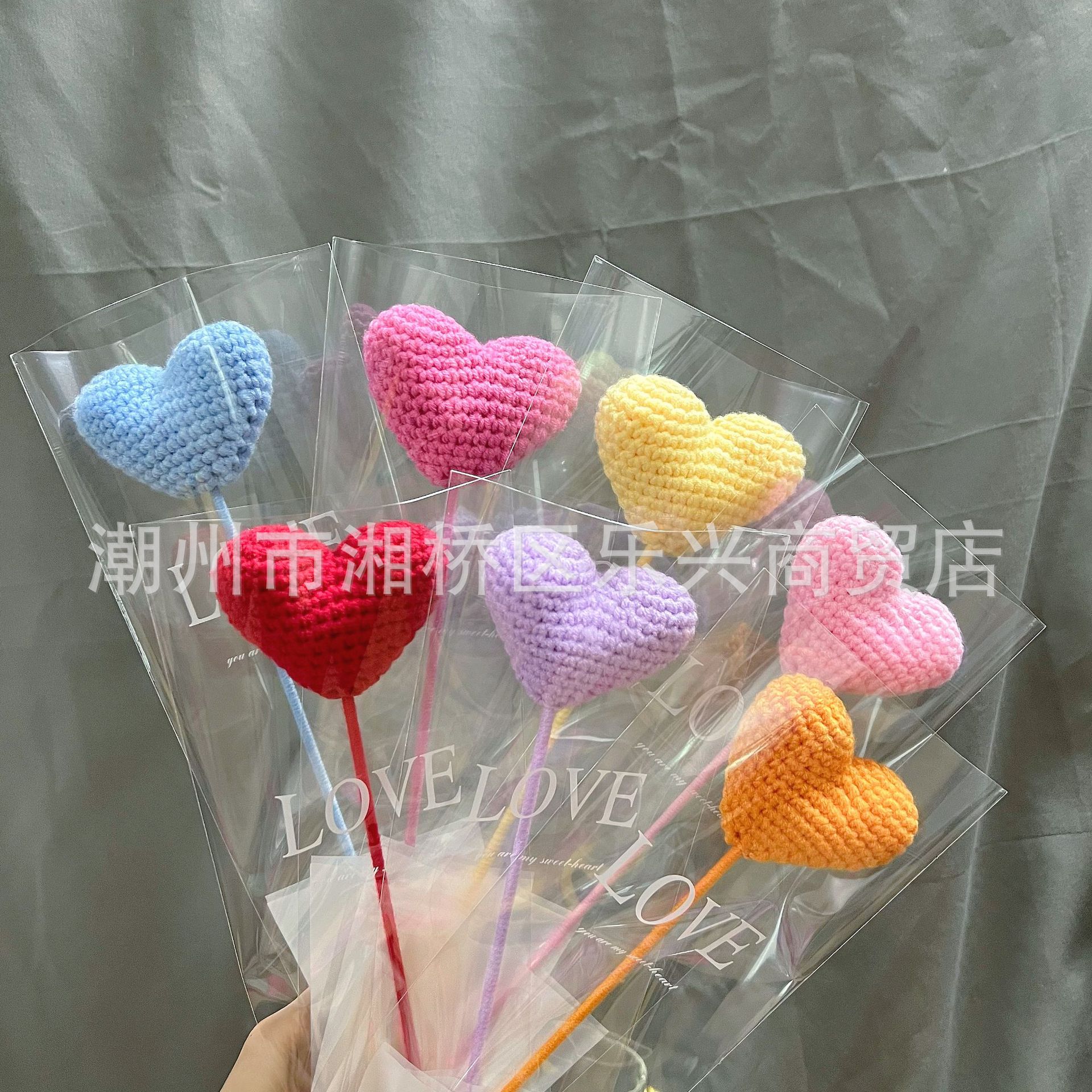 完成した編み込み愛の花の枝一輪の花と花束無地のハート型の花創造的な造花