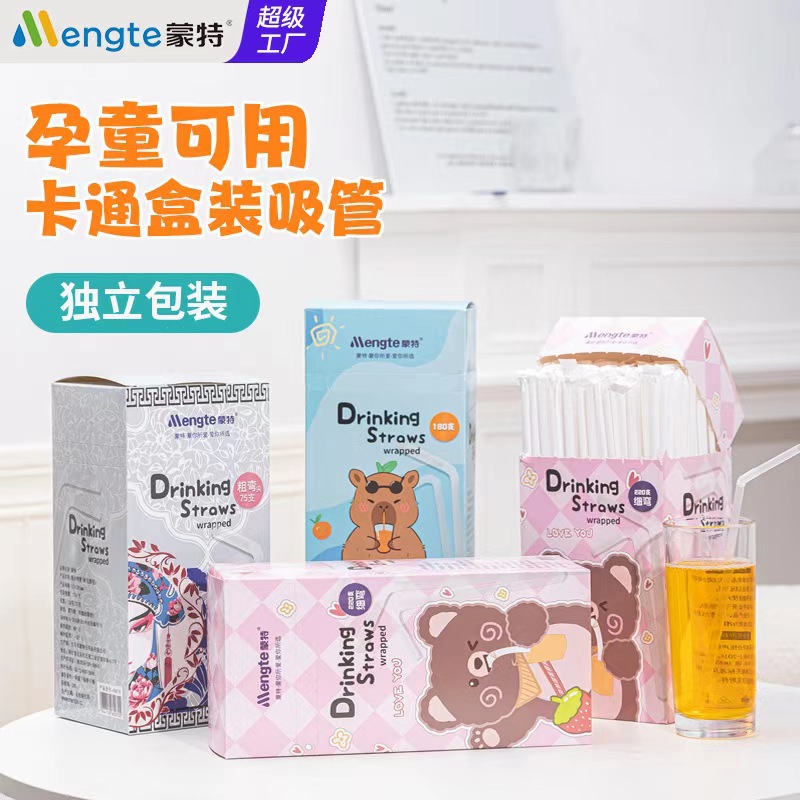 ストロー使い捨て独立包装漫画ストロー産婦子供食品級箱入りストロープラスチックエルボ