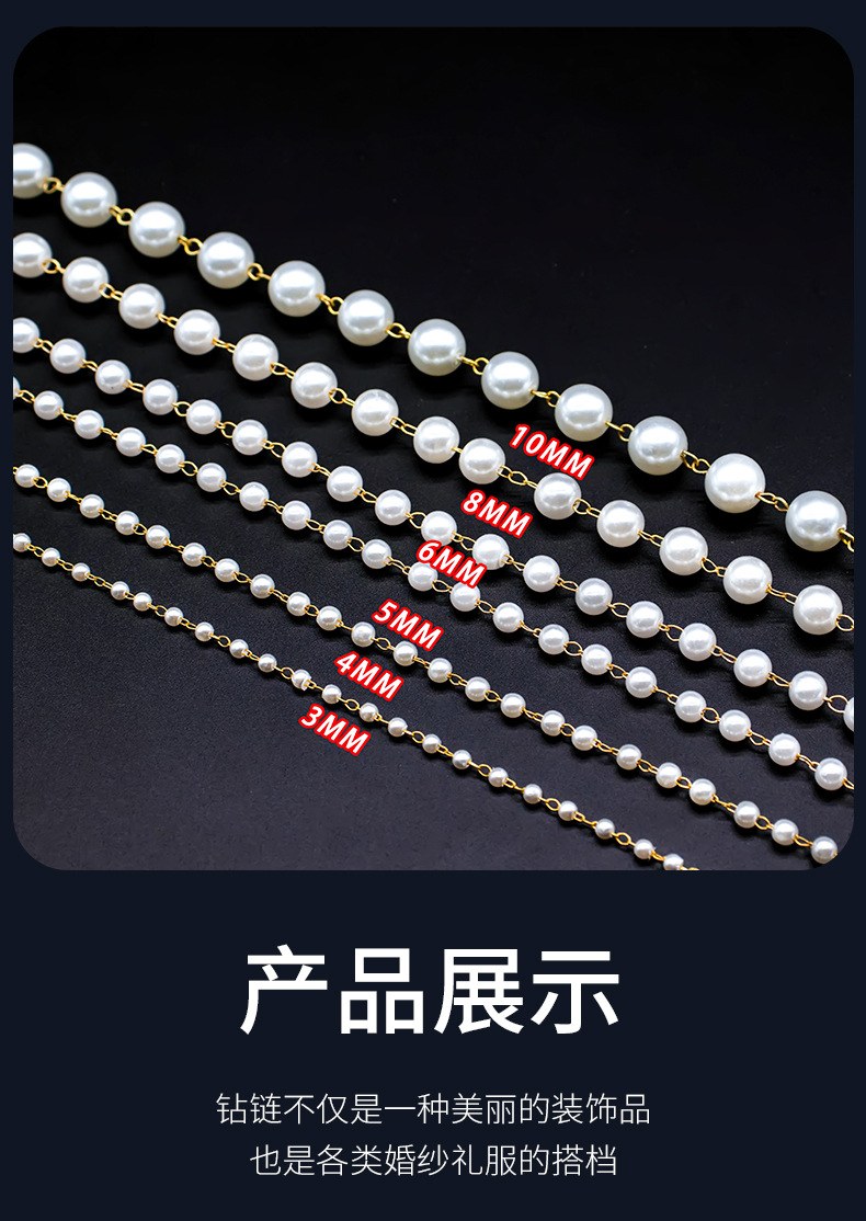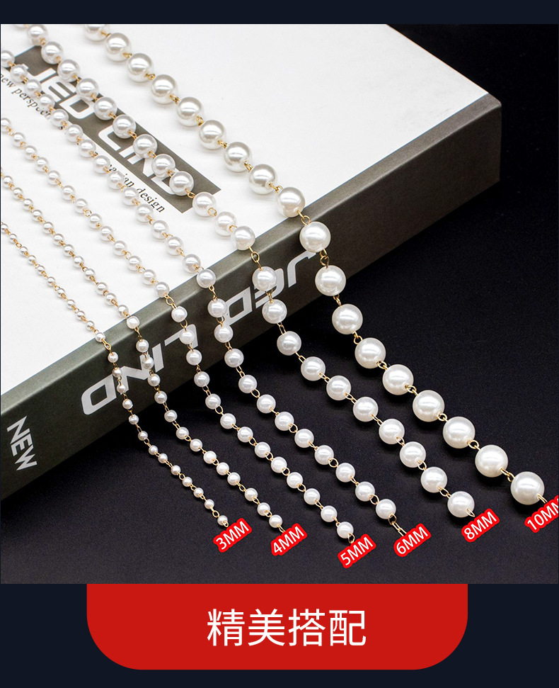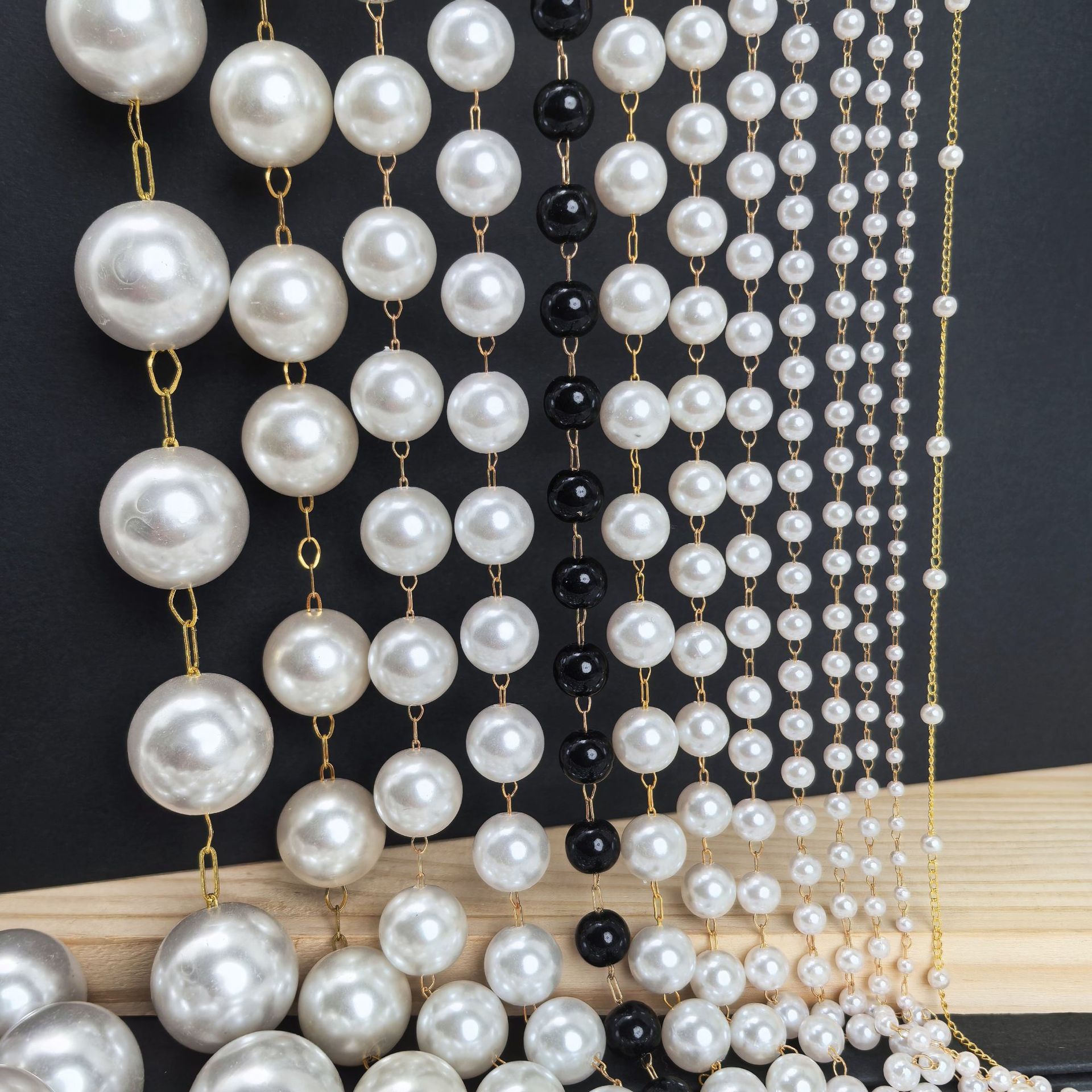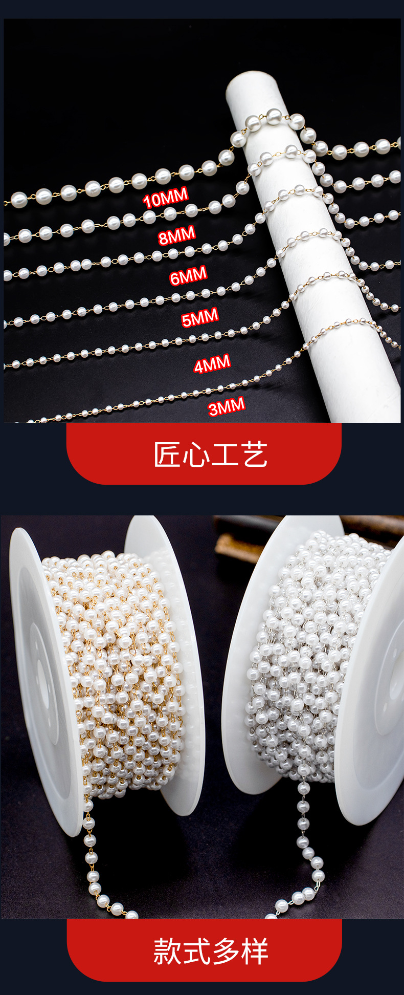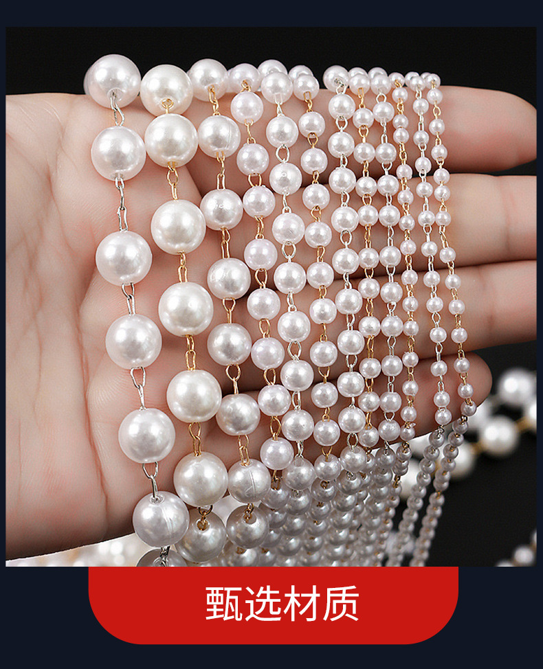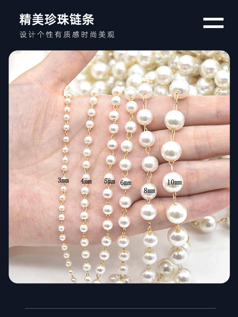 [メーカー卸売] 3mm〜10mm高光沢DIYパールチェーンネックレス、衣類、バッグ、ジュエリー、ルースチェーン卸売