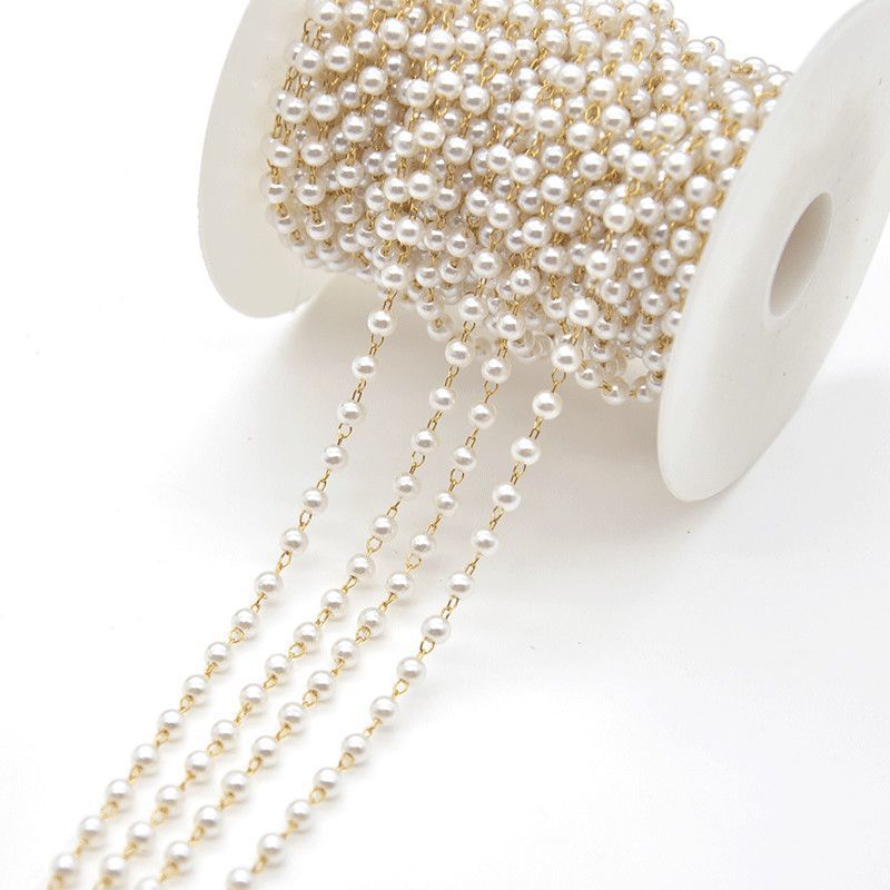 3-6mm手作りdiyイヤリングネックレス箱ビーズチェーン古風ウェディング花嫁ヘアピン流蘇真珠チェーン4mm