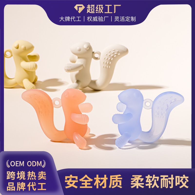 リス型のベビー歯固め、生後3ヶ月の乳児用、歯が生える時期の噛むおもちゃ、おしゃぶり癖防止、0-6ヶ月、シリコン製で安全