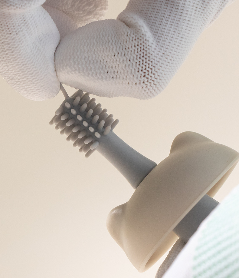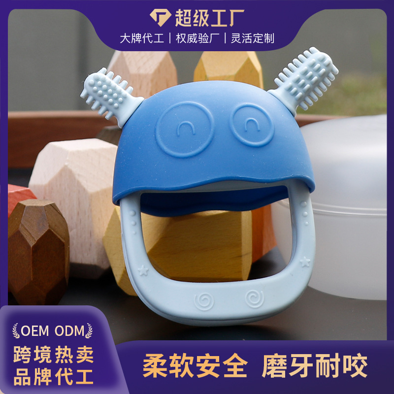 食品級シリコンゴムの赤ちゃんの歯磨き棒は手を食べないでください。