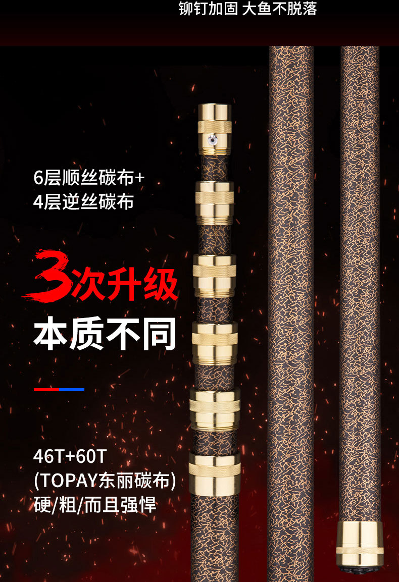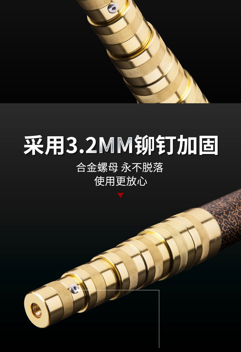 厚い高炭素模造棒3メートル9m超硬太り大物伸縮棒8mm継手釣り魚玉柄竿
