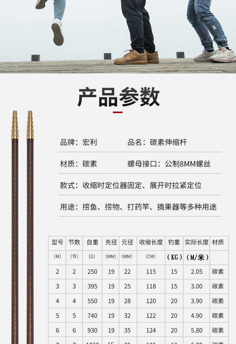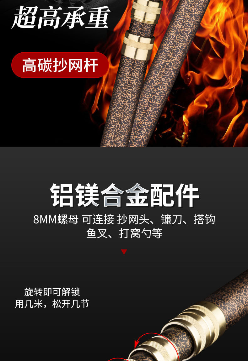 碳素超轻超硬大物抄网竿加长伸缩杆割草槟榔打松塔摘果钩香椿神器