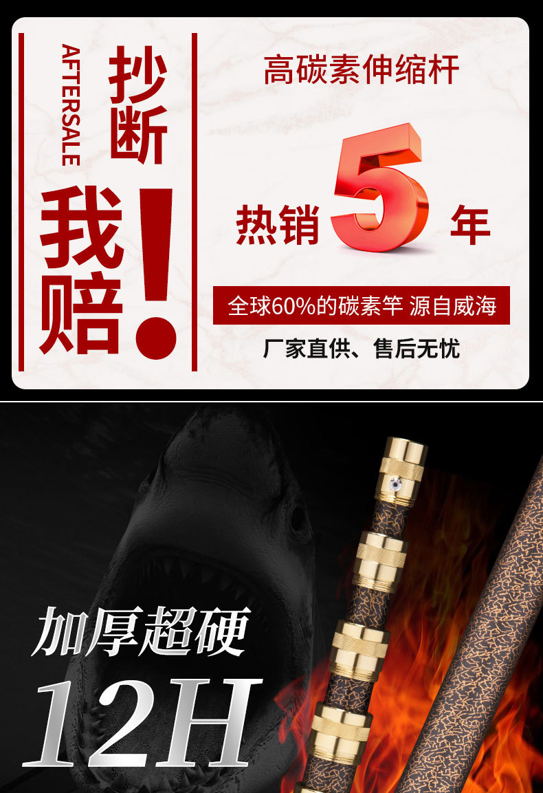 宏利炭素天幕棒自由位置決め短節大物伸縮模造竿3メートル太く携帯用釣竿