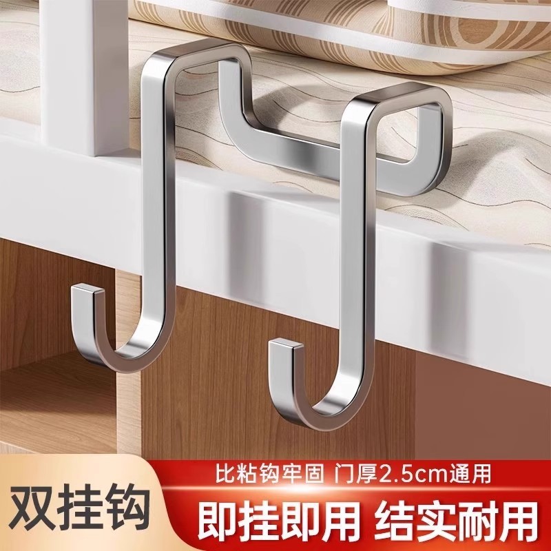 加厚不锈钢s型挂钩免打孔强力承重门后多功能柜门收纳双钩钩挂架