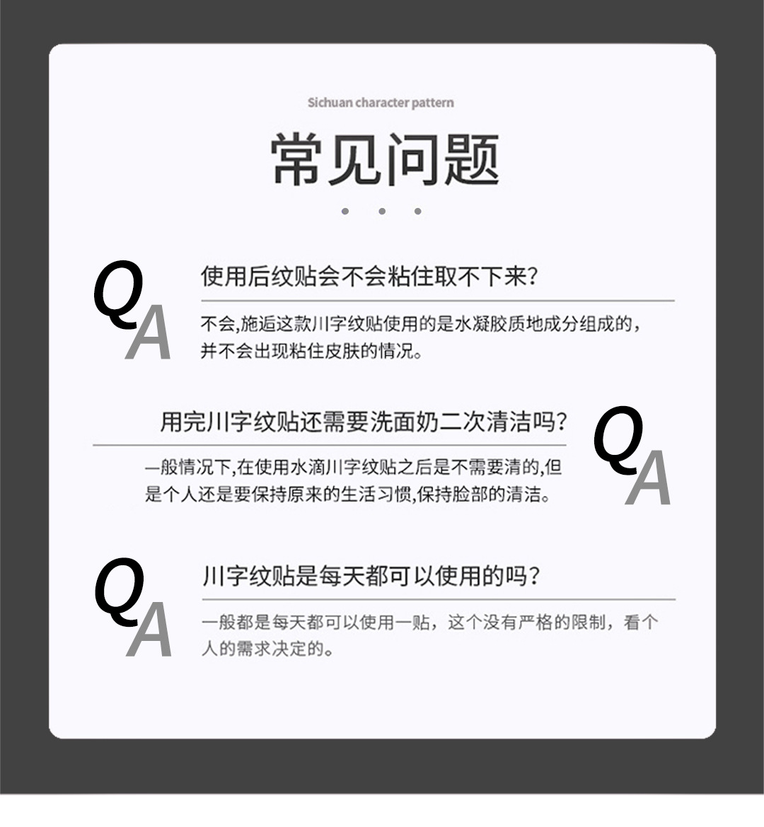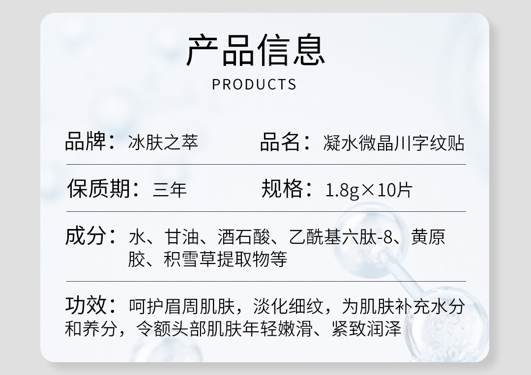 フランジの豪華な凝縮水の微晶川の字の紋様は眉毛の間の紋様の眉の心のしわの水のゲルを貼って眉の頭の八の字の紋様を貼ります。