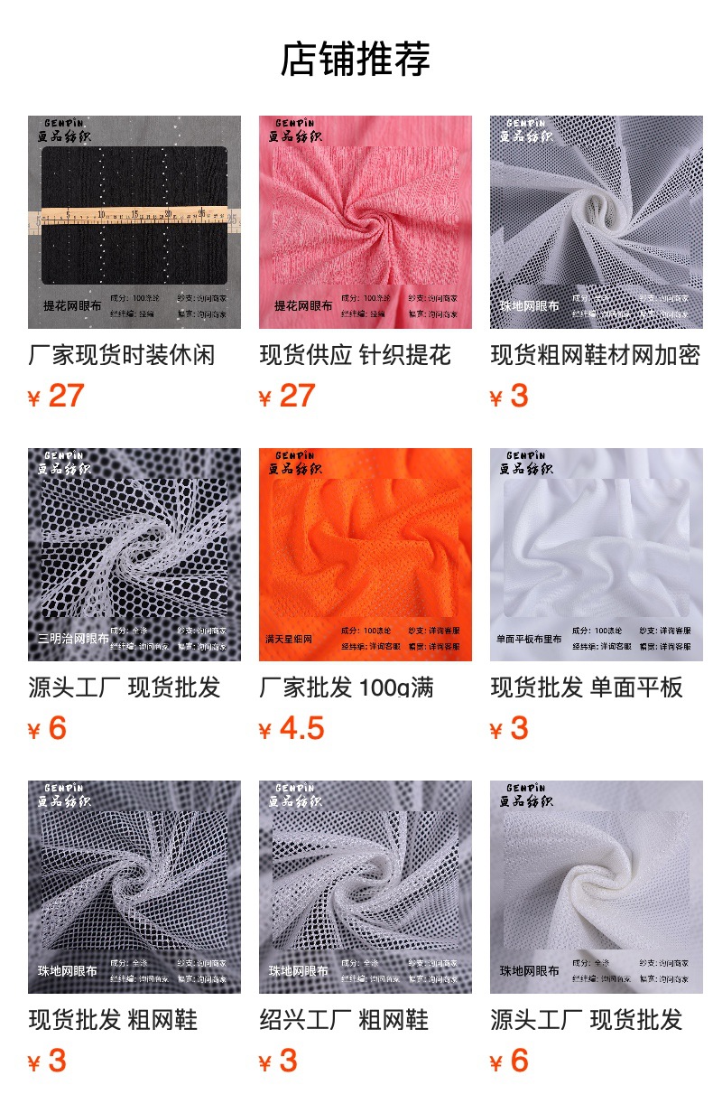 源工場現物卸売り新商品粗網布生地靴材事務座布団裏地サンドイッチ網布