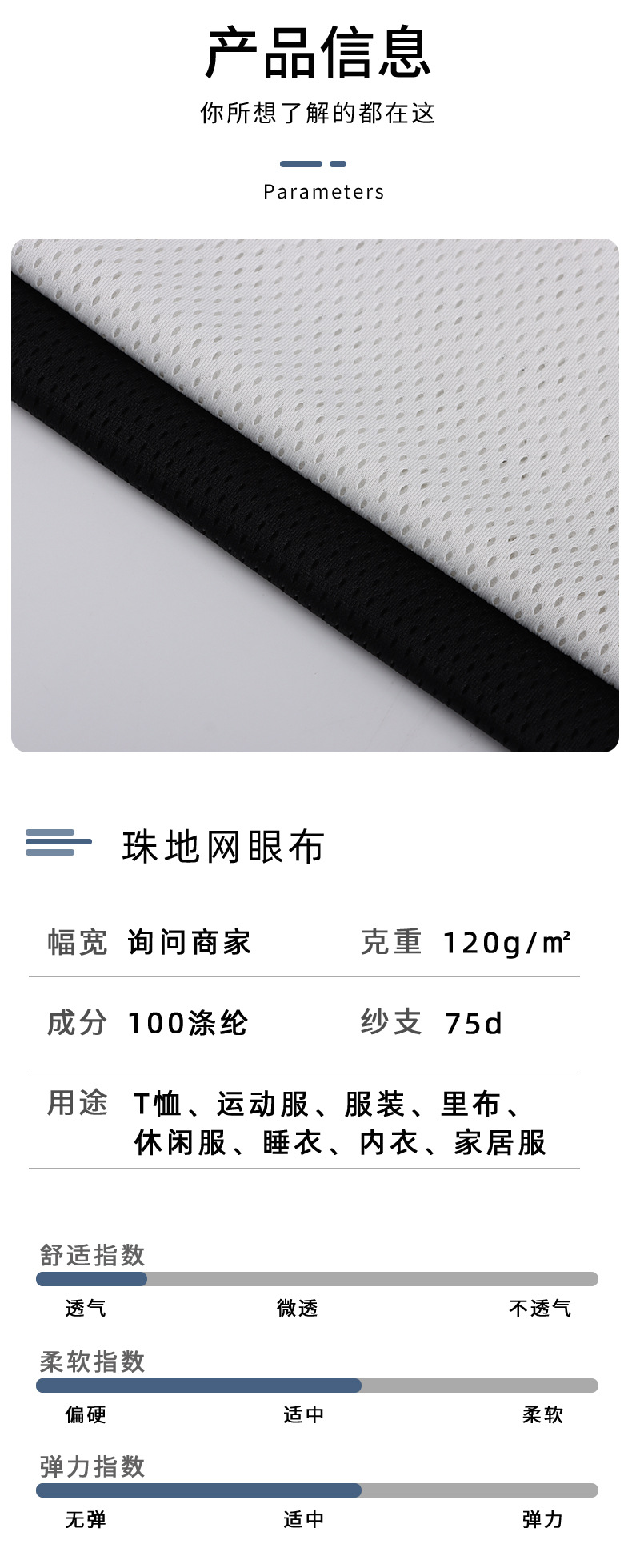 75d三级鸟眼布米通布珠地网眼布针织吸湿排汗速干运动网布t恤面料