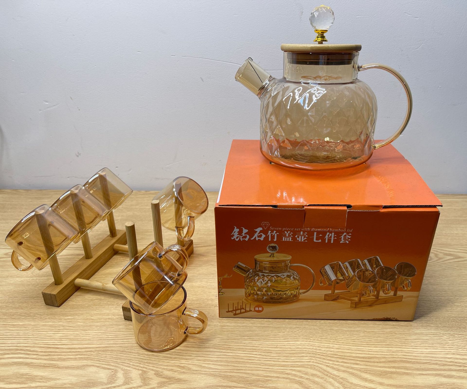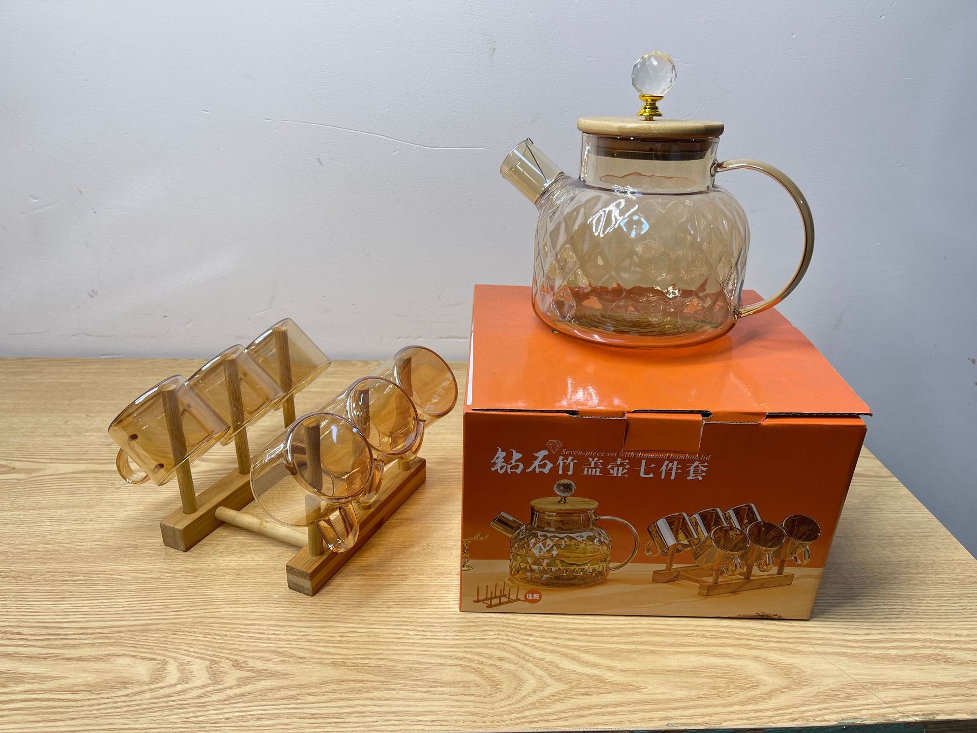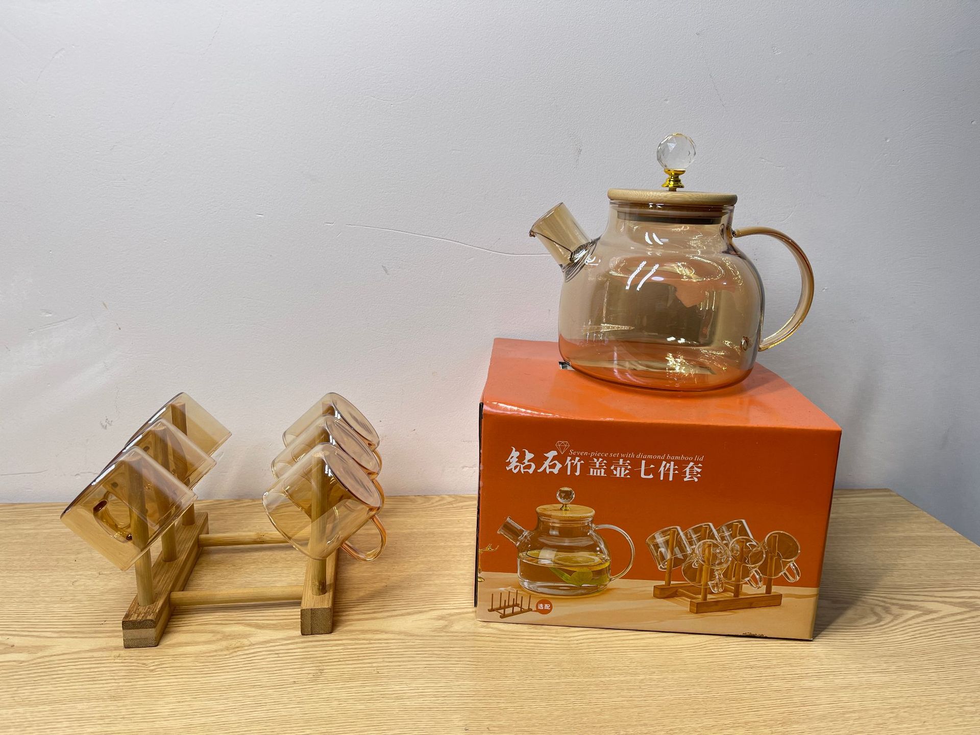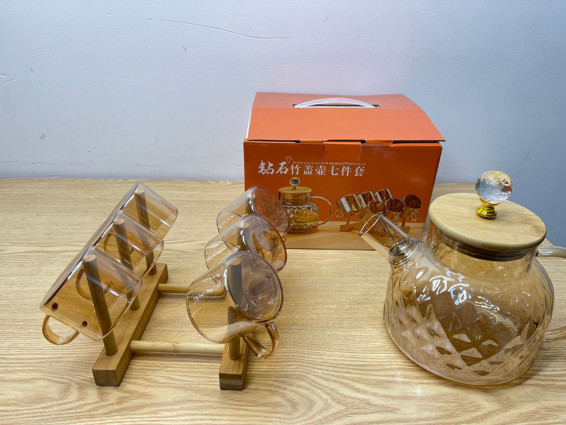 軽豪華高ホウ素耐熱ガラスドリル石竹蓋水具7点セットオレンジ色透明色家庭用ビジネスプレゼント