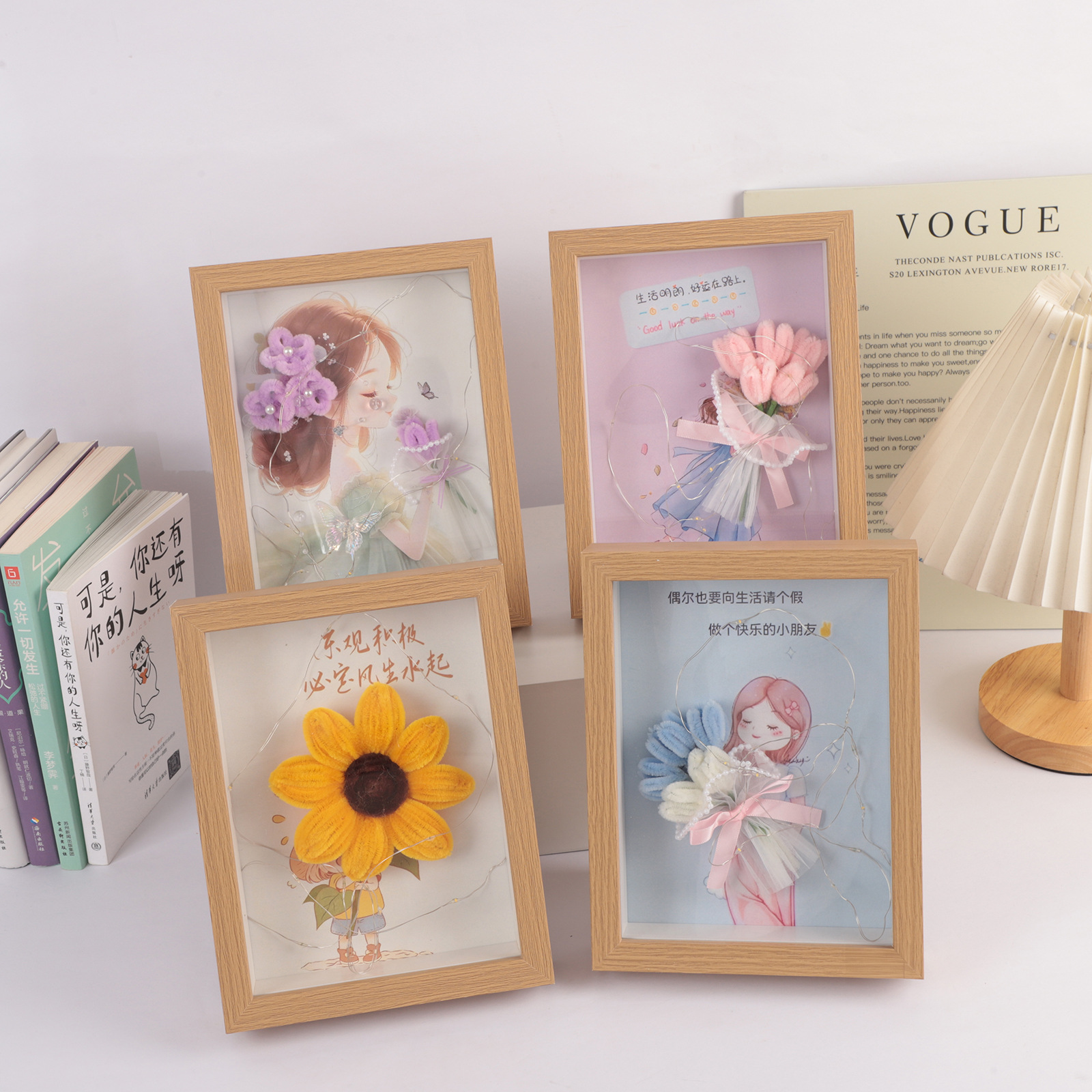 人気爆発!光るフォトフレーム DIY 手作りドライフラワーフレーム フィギュアディスプレイボックス 永遠の花 両面ディスプレイ ギフト