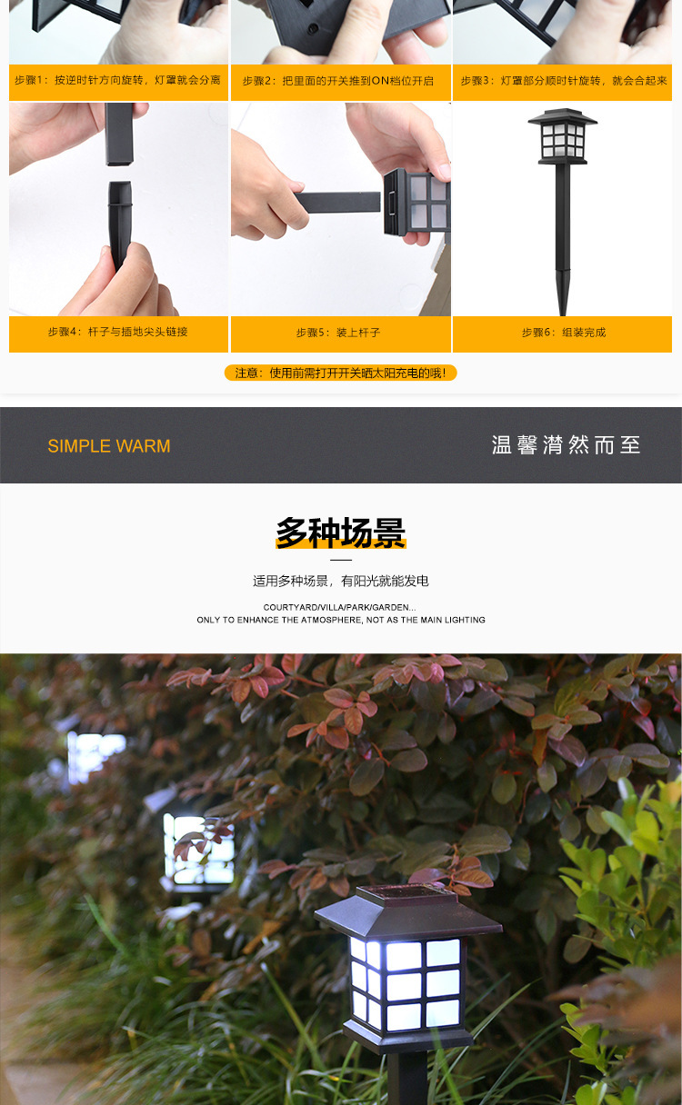 ソーラー芝生ライト屋外防水フロアライトledソーラー庭園景観レトロ装飾照明灯