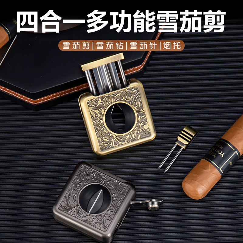 HANNICOOK シガーカッター 4-in-1 多機能レトロ V 字型シガーカッター タバコホルダー タバコホルダー シガーペンチ