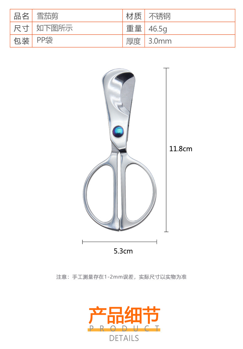 ステンレスハンドル式シガーカット鋭利な両刃シガーカッターシンプルシガーはさみメーカー卸売り