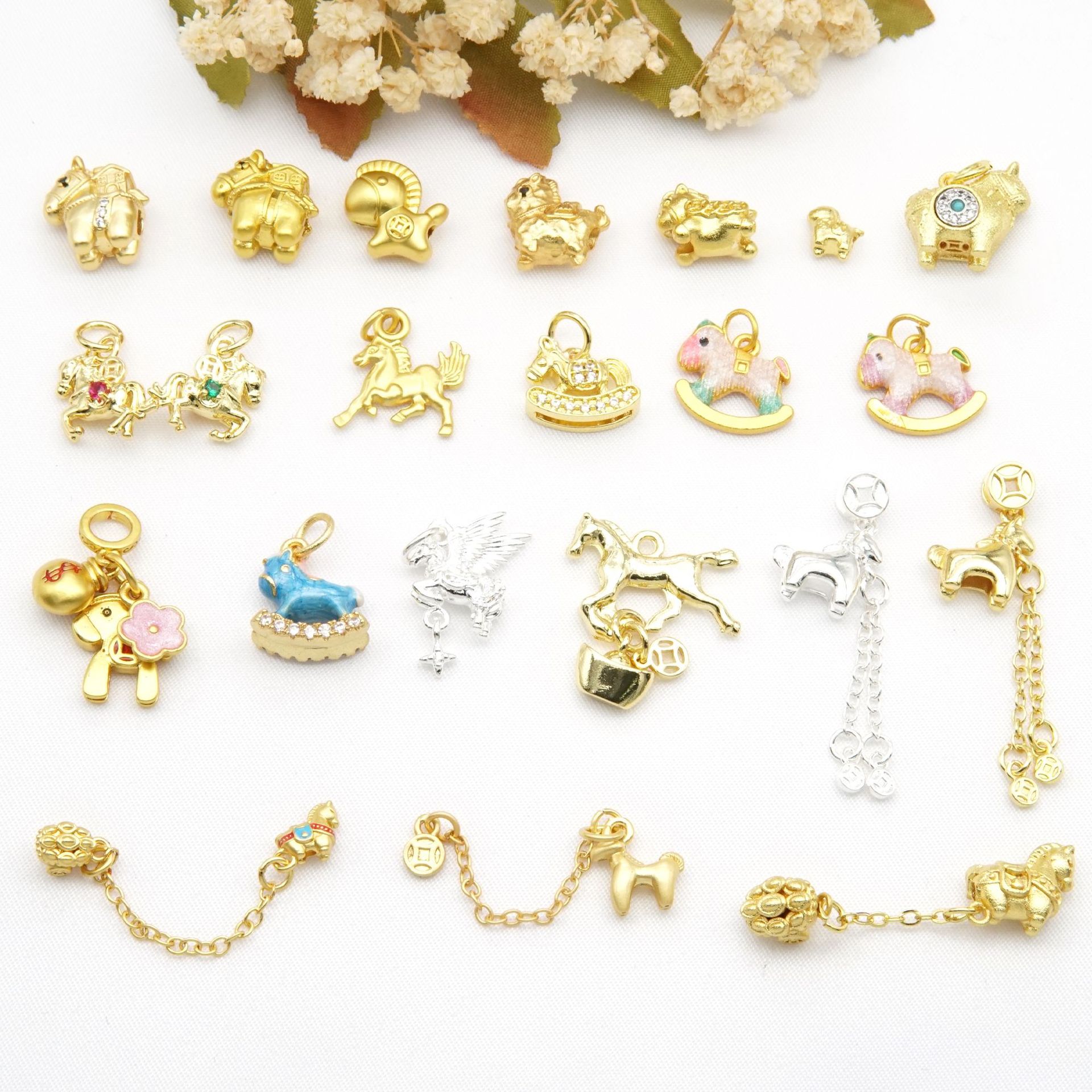 古法金色滴油马年小木马吊坠微镶生肖马隔珠diy手链项链配件配饰