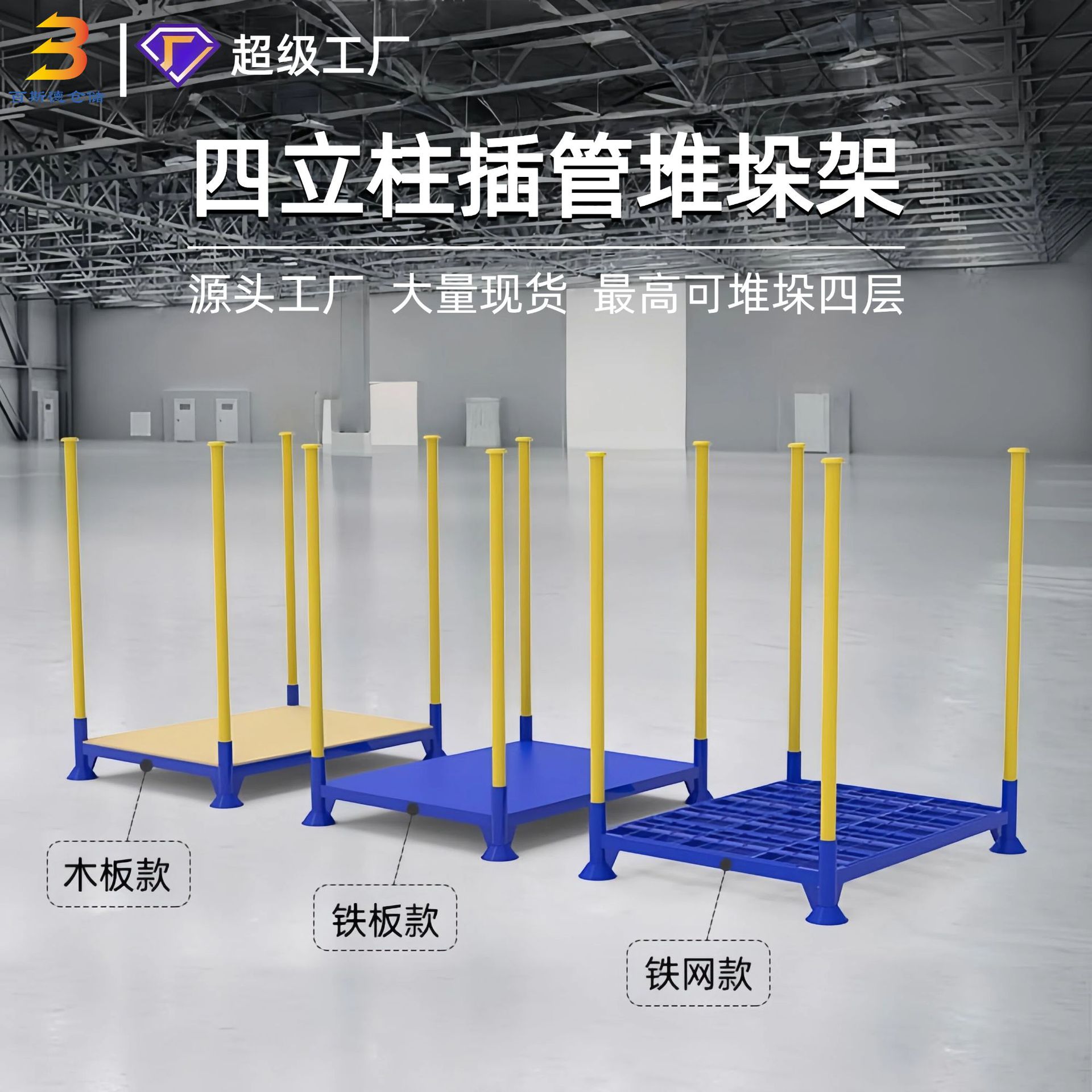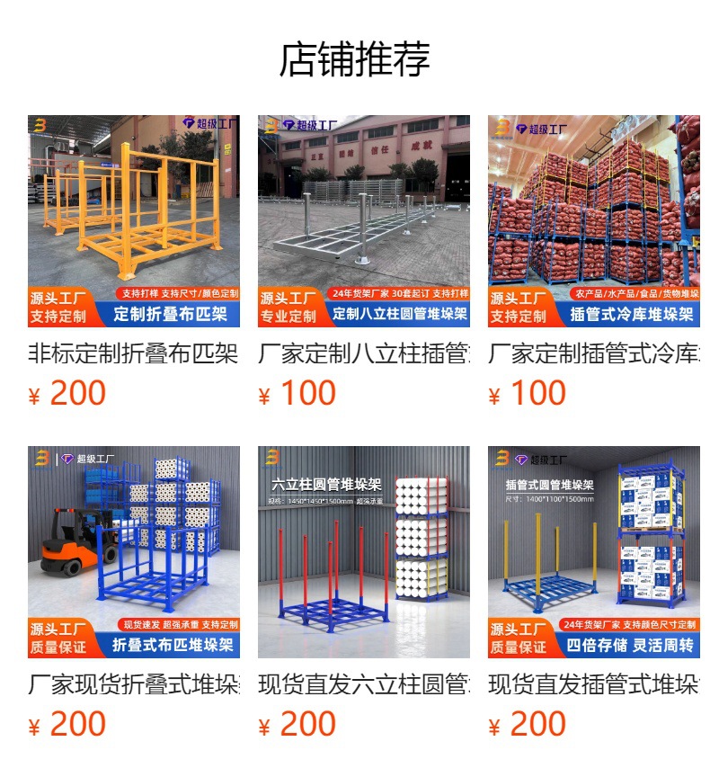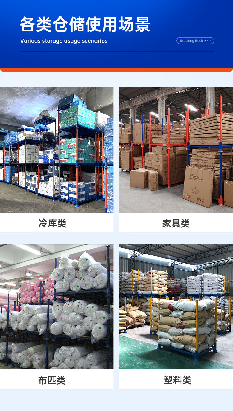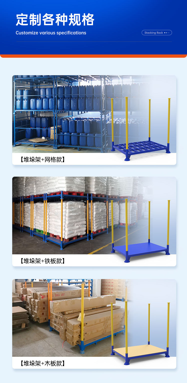 仕様とモデル 軽量スタッカー(耐荷重600kg),標準型スタッキングラック(耐荷重1トン),広発型スタッキングラック(耐荷重1.2トン),カスタマイズされたスタッキングシェルフ