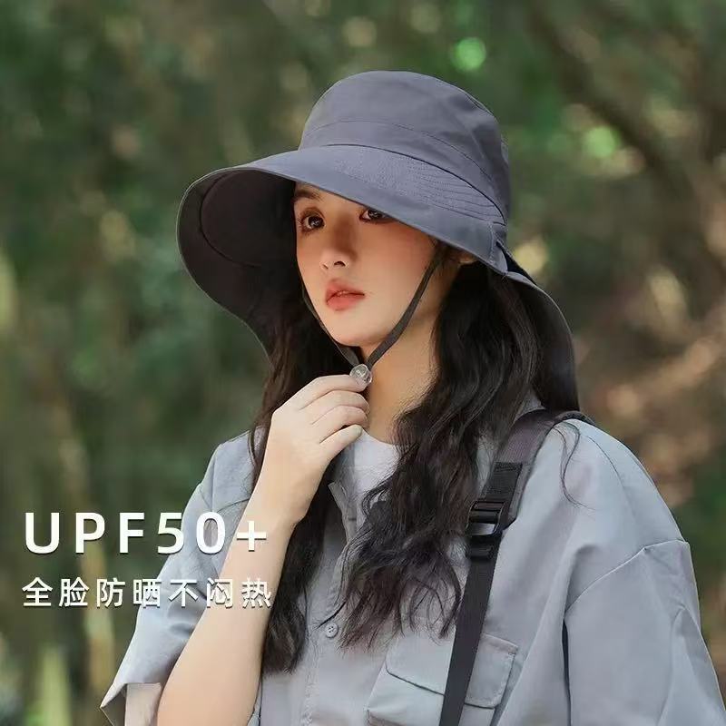 防晒帽子女夏季大檐护颈渔夫帽UPF100+遮阳遮脸户外骑行透气凉帽